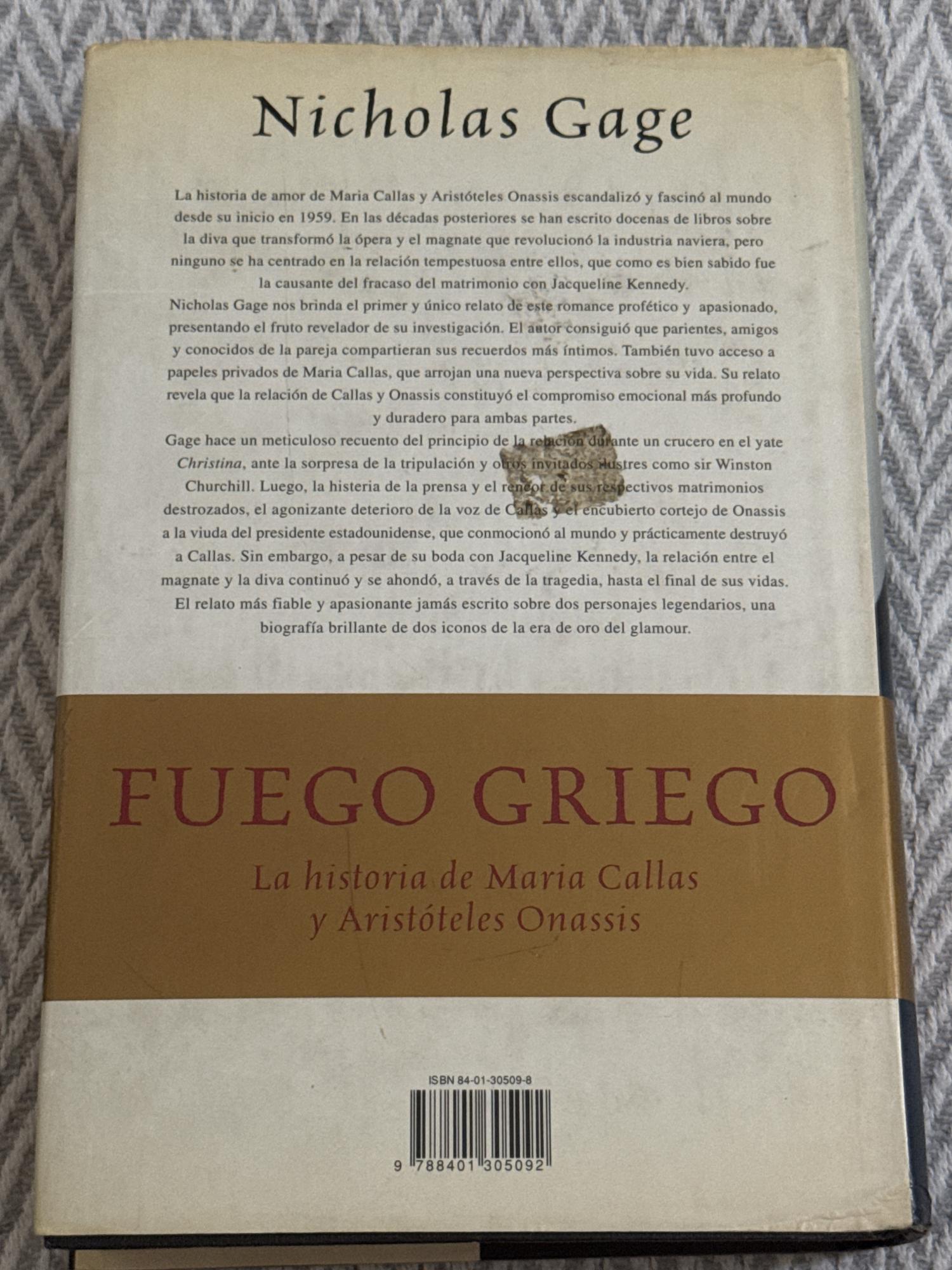 Fuego griego es una biografía apasionante y reveladora que narra la relación amorosa entre Maria Callas, la célebre soprano de ópera, y Aristóteles Onassis, un poderoso magnate naviero.