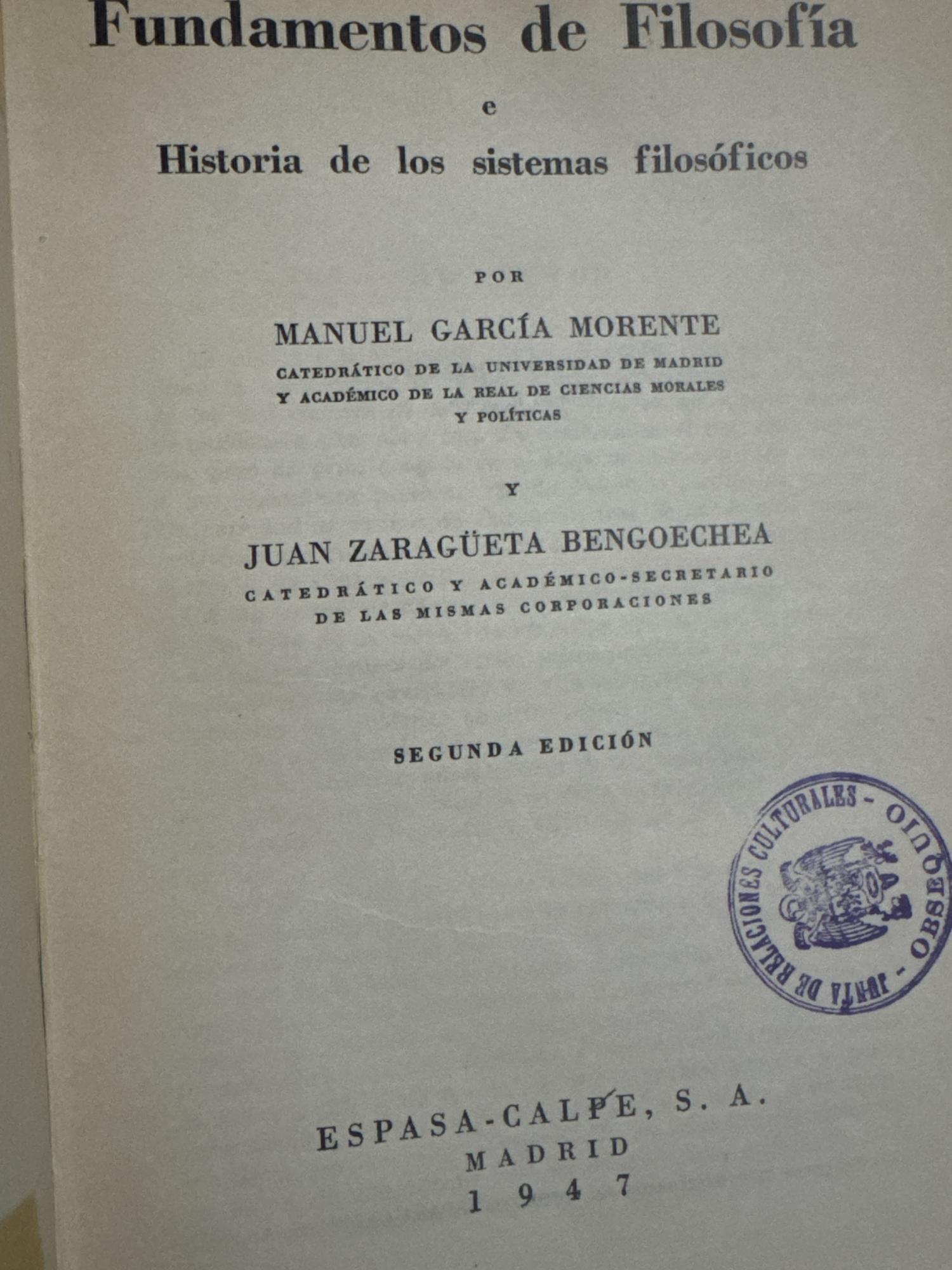 Obra de carácter didáctico que presenta los problemas fundamentales de la filosofía: conocimiento, ser, verdad, valores y sentido de la realidad. García Morente expone de manera sistemática las principales corrientes del pensamiento occidental y sus conceptos básicos. Es un texto clásico de introducción académica a la filosofía en lengua española.