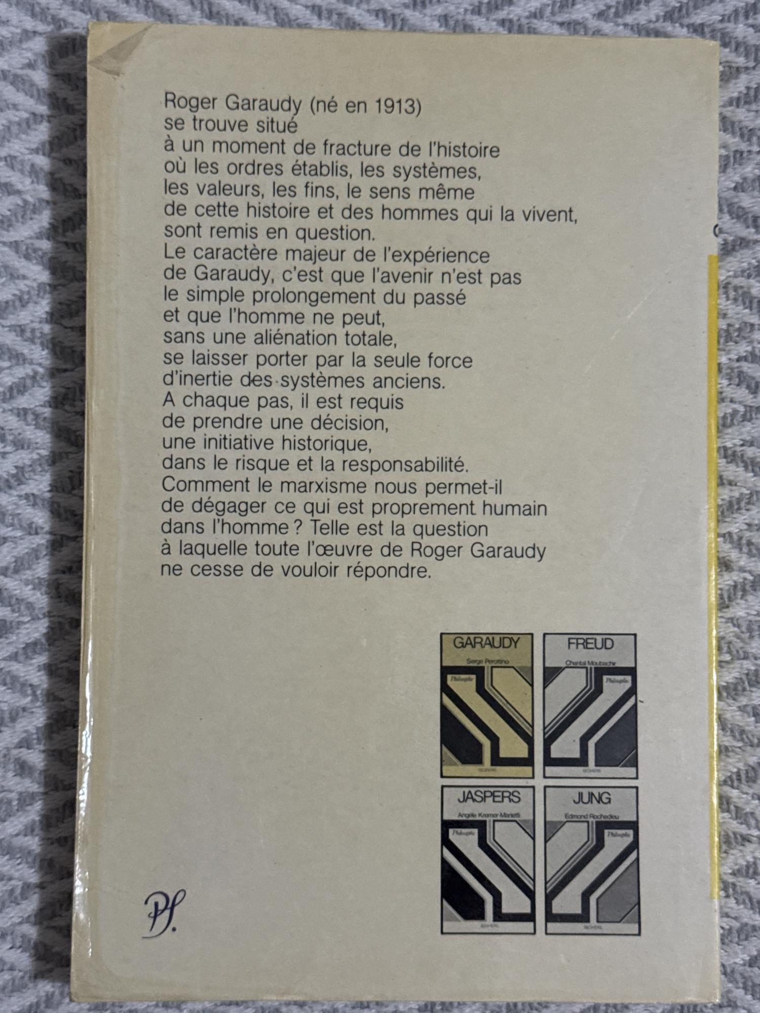 El autor analiza la evolución del pensamiento de Roger Garaudy frente al marxismo del siglo XX, mostrando cómo mezcla ideas de subjetividad, trascendencia y revolución para construir una teoría que busca articular la libertad individual sin caer en el irracionalismo. El libro está estructurado en tres capítulos: subjetividad y creación artística; trascendencia y revolución; y la dialéctica de la historia con modelos socialistas.