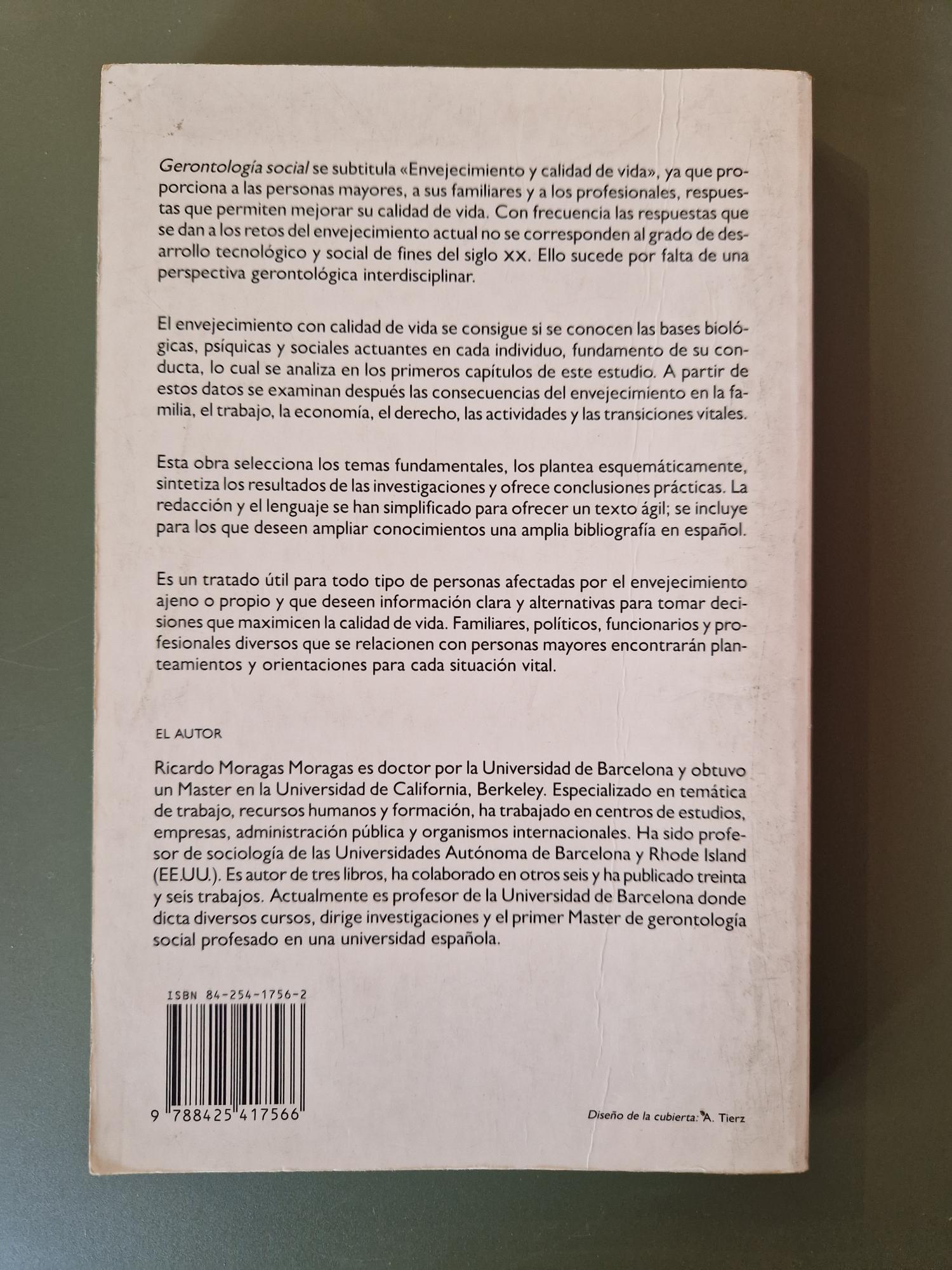 En Gerontología social. Envejecimiento y calidad de vida, Ricardo Moragas aborda el envejecimiento desde una perspectiva social, analizando sus implicaciones demográficas, culturales y asistenciales. El autor examina los factores que influyen en la calidad de vida de las personas mayores y propone enfoques orientados a la integración y la participación activa. Esta obra constituye una referencia fundamental para profesionales y estudiantes interesados en comprender los retos contemporáneos del envejecimiento.