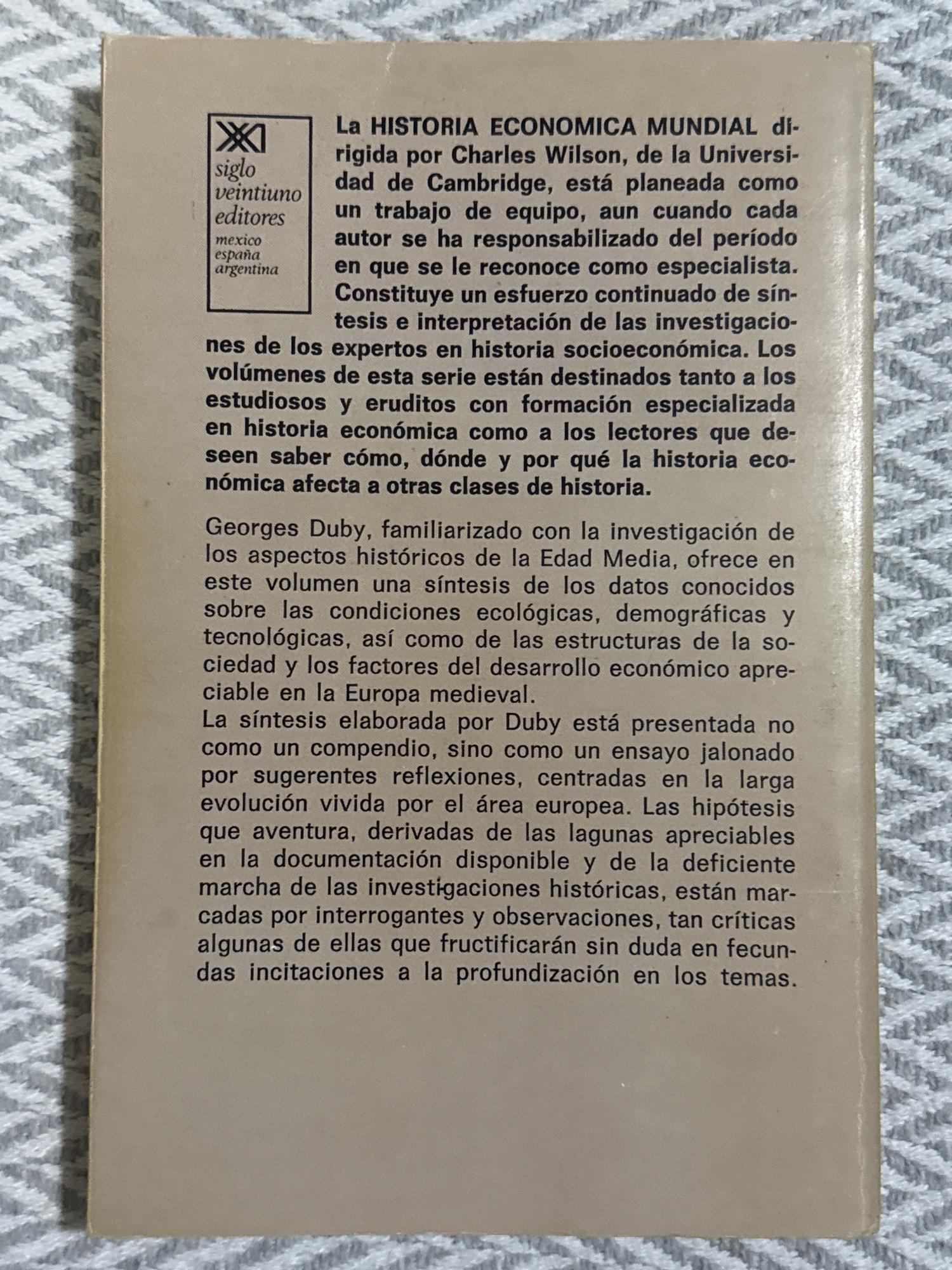 Analiza la estructura social de la Europa medieval entre los siglos VII y XII, centrándose en la relación entre la nobleza guerrera y el campesinado. Duby estudia el feudalismo, la economía rural y las transformaciones sociales del mundo medieval. La obra es un clásico de la historia social por su enfoque estructural y de larga duración.