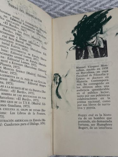 Happy End es una obra breve de Vázquez Montalbán que forma parte de lo que él denominaba sus “Escritos Subnormales”. Aunque no hay muchos detalles disponibles públicamente sobre la trama concreta de Happy End, se sabe que en esta novela se aprecia el estilo característico del autor: mezcla de realismo y crítica social, un tono narrativo directo, evocaciones de tensiones psicológicas y sociales, y una mirada aguda hacia los comportamientos humanos en situaciones límite