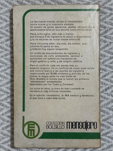Publicado por la editorial Mensajero en la colección Bolsillo Mensajero (n.º 43), en su 1ª edición de noviembre de 1973, con 184 páginas. El autor analiza los orígenes, las dinámicas internas y la estrategia de la I.R.A., mostrando sus dimensiones políticas, sociales y militares.
