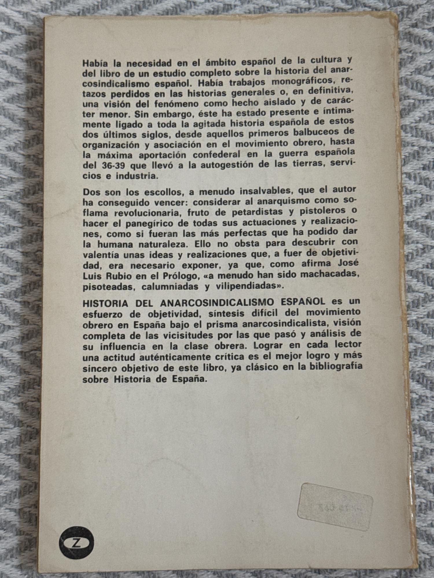 Historia del anarcosindicalismo español traza la evolución del movimiento anarcosindicalista desde sus orígenes hasta los momentos en los que ya tiene una influencia notable en el tejido social y político de España.