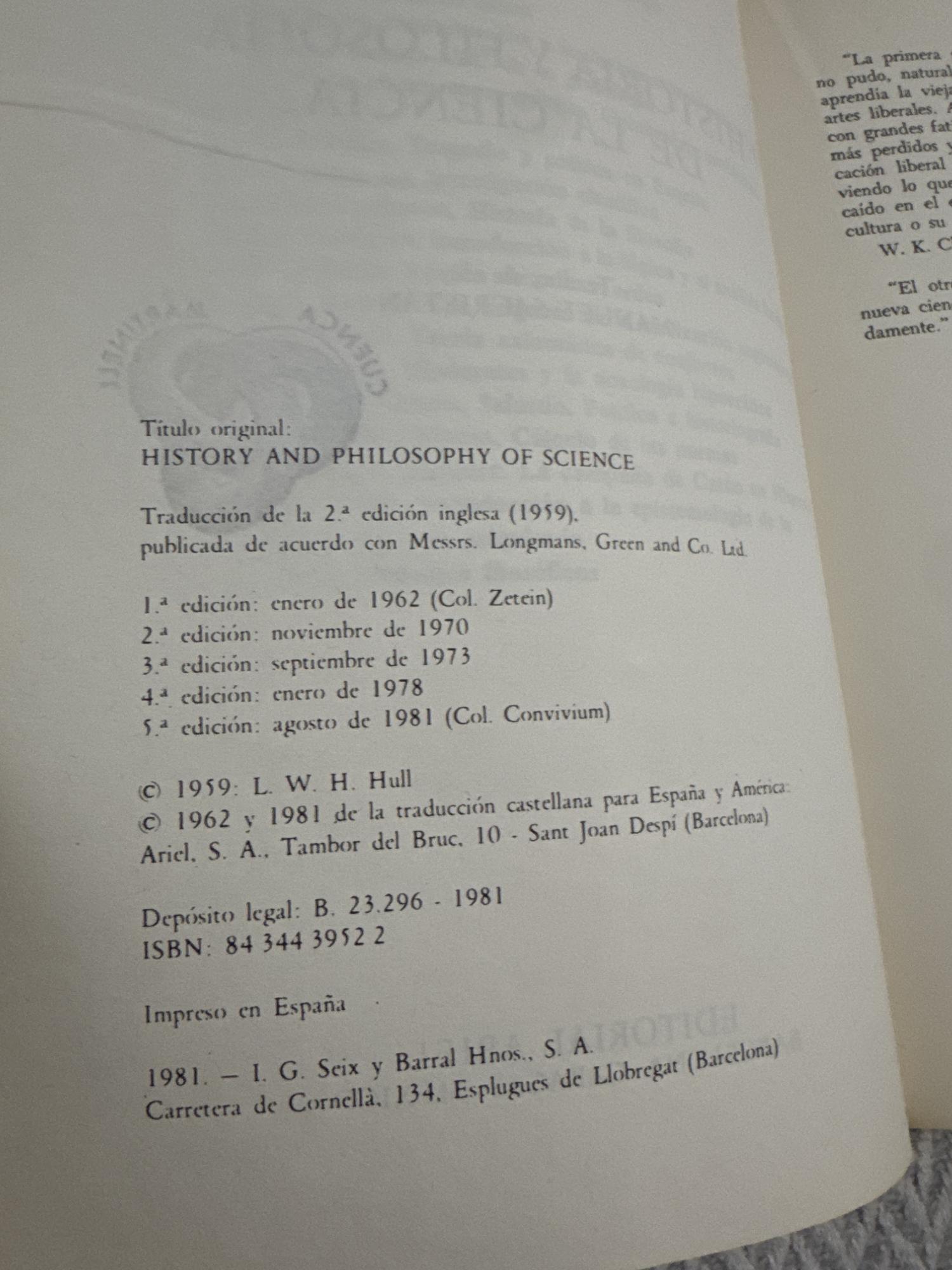 El libro ofrece una visión general del desarrollo histórico de la ciencia junto con sus fundamentos filosóficos. Analiza cómo han evolucionado las ideas científicas y los métodos de investigación a lo largo del tiempo. Es una obra introductoria que ayuda a comprender la ciencia como actividad humana, integrando contexto histórico y reflexión crítica.
