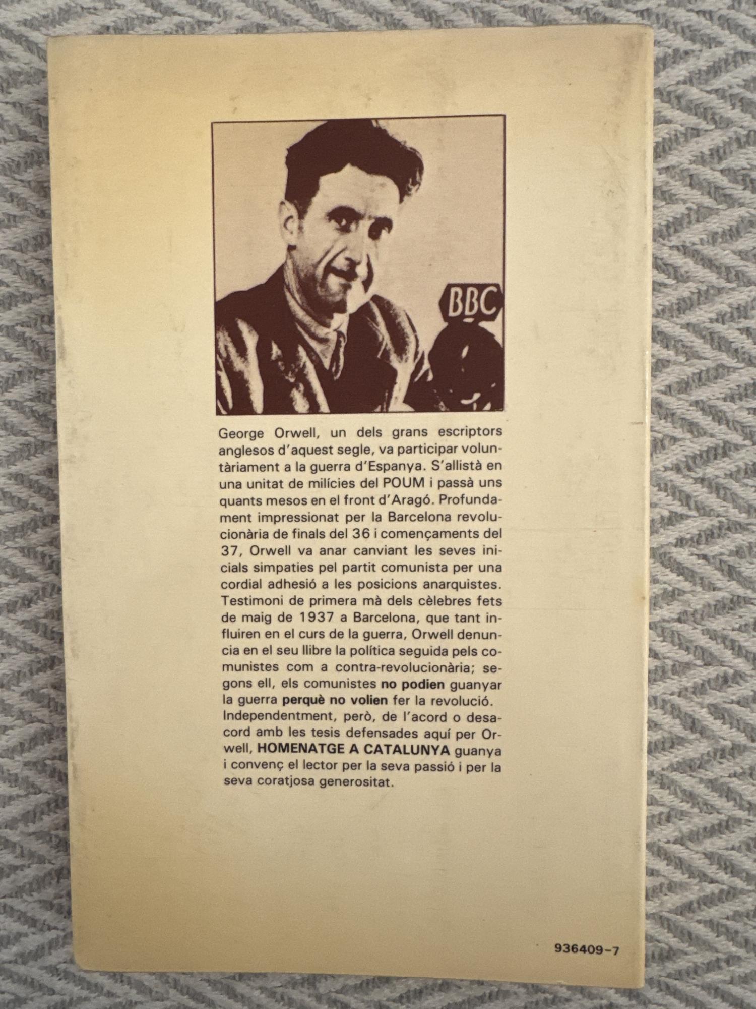 Testimoni en primera persona de George Orwell sobre la seva participació a la Guerra Civil Espanyola, on descriu tant l’experiència al front com les tensions polítiques dins del bàndol republicà. L’obra combina crònica bèl·lica i anàlisi crítica, posant en evidència la propaganda i els conflictes ideològics interns. És un relat directe i desmitificador sobre la guerra i les seves contradiccions.