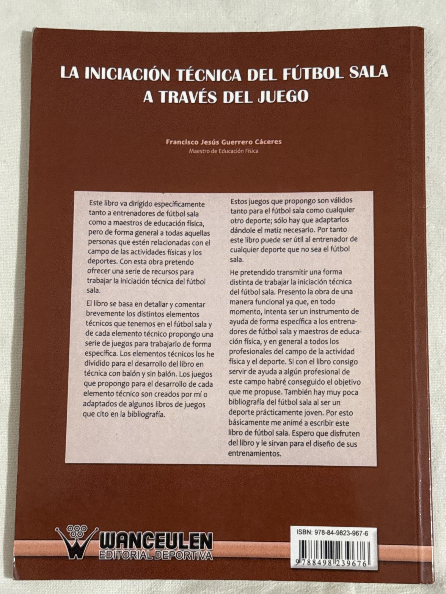 El libro "Iniciación al fútbol sala a través del juego" (ISBN 9788498239676) ofrece ejercicios y juegos para entrenar a jóvenes en habilidades básicas del fútbol sala. Está dirigido a entrenadores y profesores, promoviendo un aprendizaje divertido y efectivo.