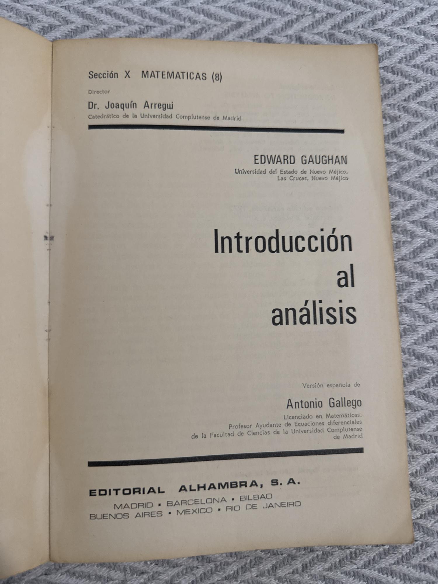 El libro presenta una introducción rigurosa al análisis matemático, abordando conceptos como límites, continuidad, sucesiones y series. Desarrolla los fundamentos con precisión formal y numerosos ejemplos. Es una obra orientada a estudiantes universitarios que se inician en el análisis.