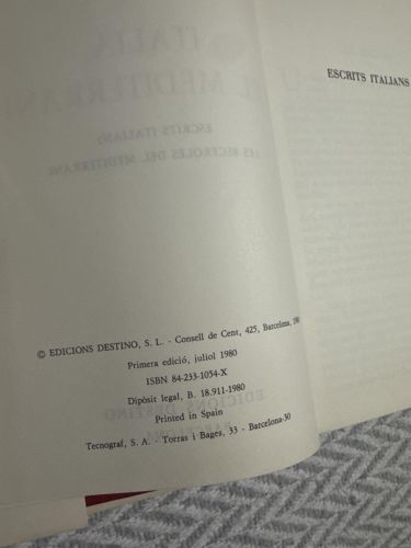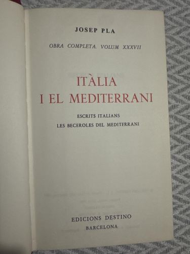 Itàlia i el mediterrani Escrits italians les beceroles del mediterrani. Obra completa. Volum XXXVII