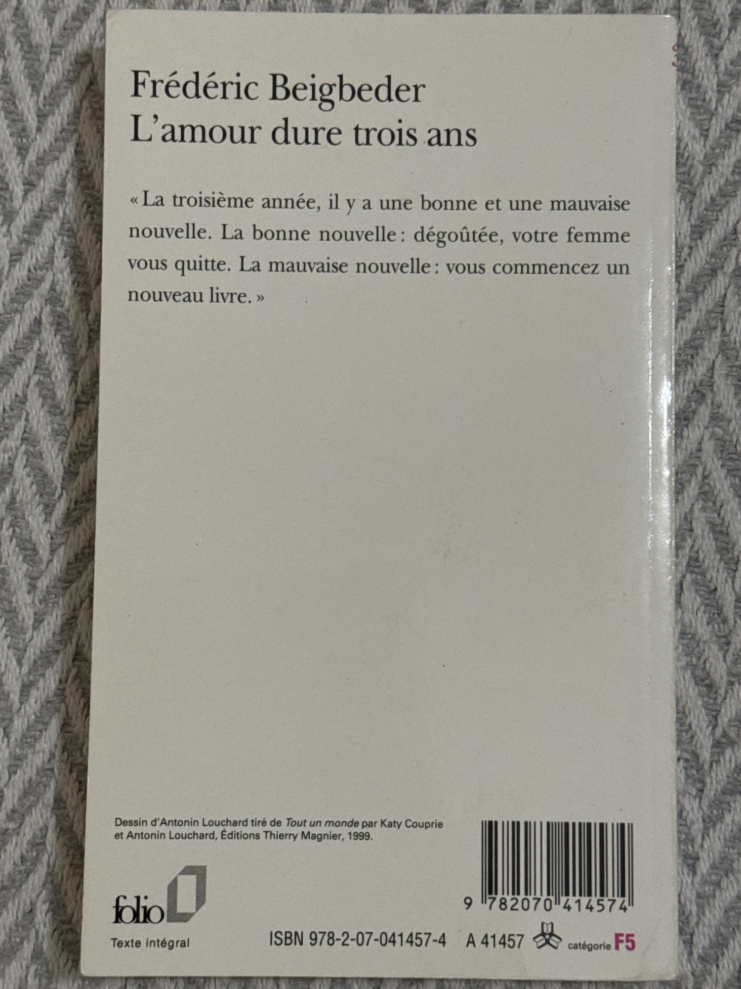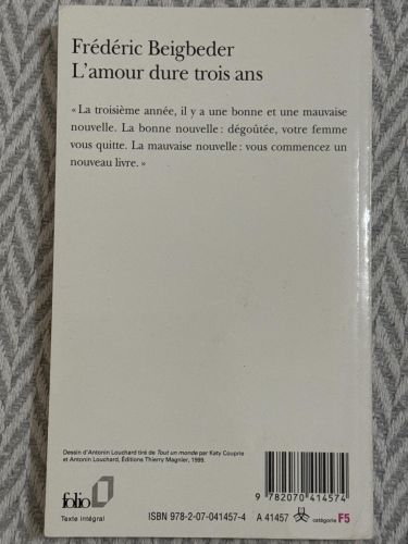 La novela examina la ilusión del amor romántico y su inevitable desgaste con el paso del tiempo. El protagonista, Marc Marronnier, cree con firmeza que “el amor dura tres años” —una sentencia que se convierte en su mantra.