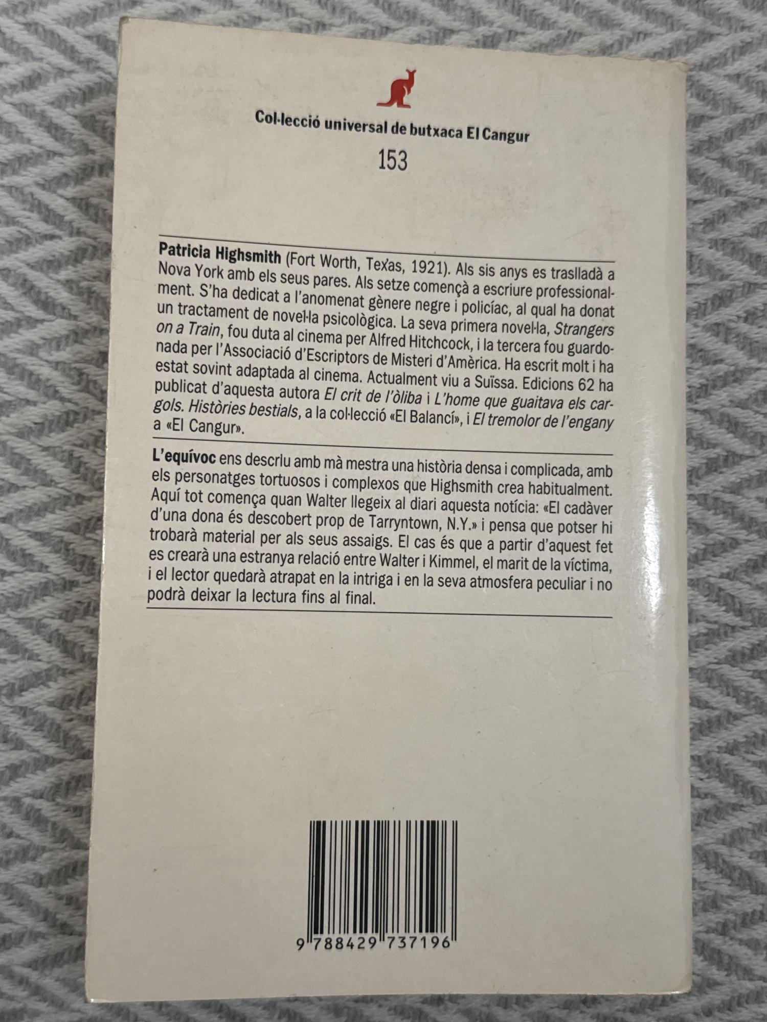 L’equívoc de Patricia Highsmith és una novel·la de suspens psicològic centrada en un malentès que desencadena una espiral de culpa, paranoia i violència latent. Amb un estil sobri i tens, l’autora explora la fragilitat moral dels personatges i com una decisió aparentment menor pot tenir conseqüències devastadores.