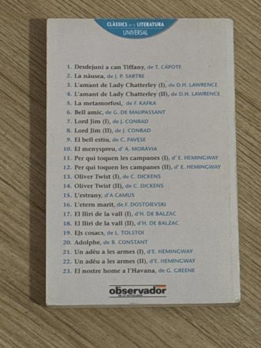 El observador, 1992, Catalán, 17 x 11cm, 233pp. Tapa blanda ilustrada. Con señales de uso
