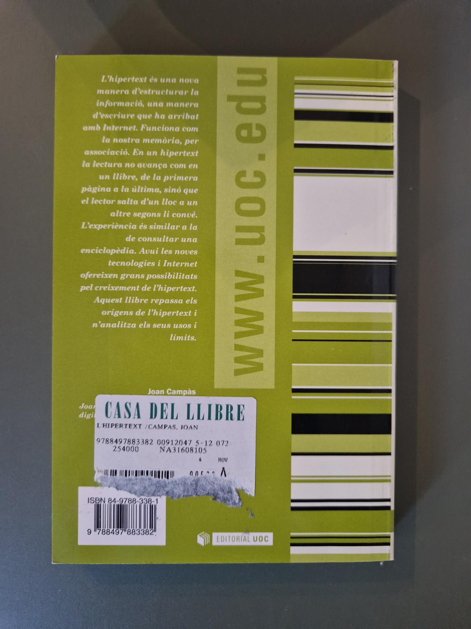 A L’hipertext, Joan Campàs investiga les transformacions que introdueix l’escriptura digital en la manera de llegir, pensar i organitzar el coneixement. L’autor analitza com els enllaços, les estructures no lineals i la interactivitat redefineixen la narrativa i la comunicació contemporànies. Amb un estil clar i suggeridor, aquest llibre ofereix una mirada essencial per comprendre el potencial creatiu i crític de l’hipertext en la cultura actual.