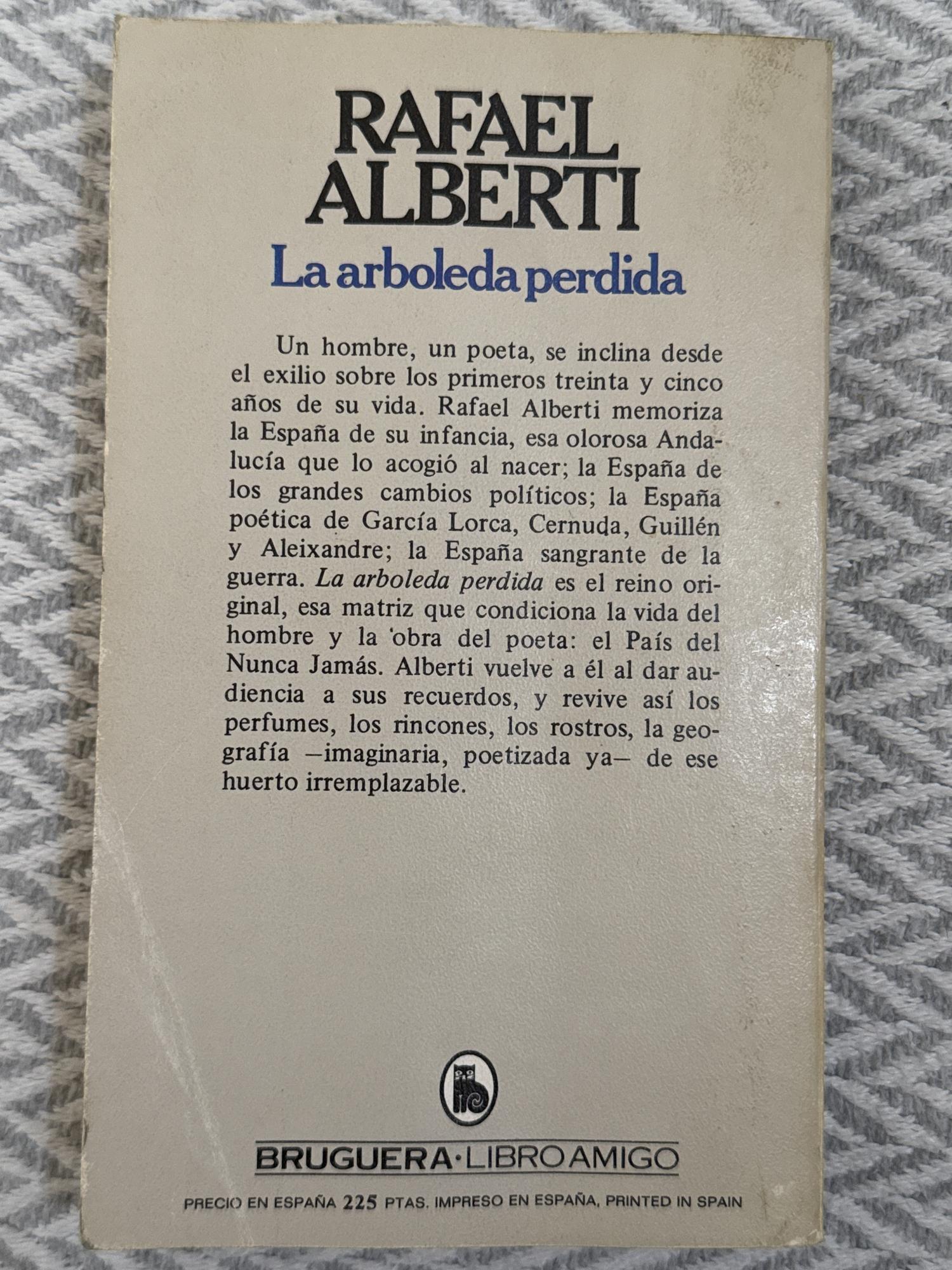 La arboleda perdida de Rafael Alberti es una obra autobiográfica en la que el autor reconstruye su infancia, juventud y formación intelectual, así como el ambiente cultural y político de la España del primer tercio del siglo XX. Con un tono evocador y literario, el libro combina memoria personal, historia cultural y reflexión sobre la creación poética.