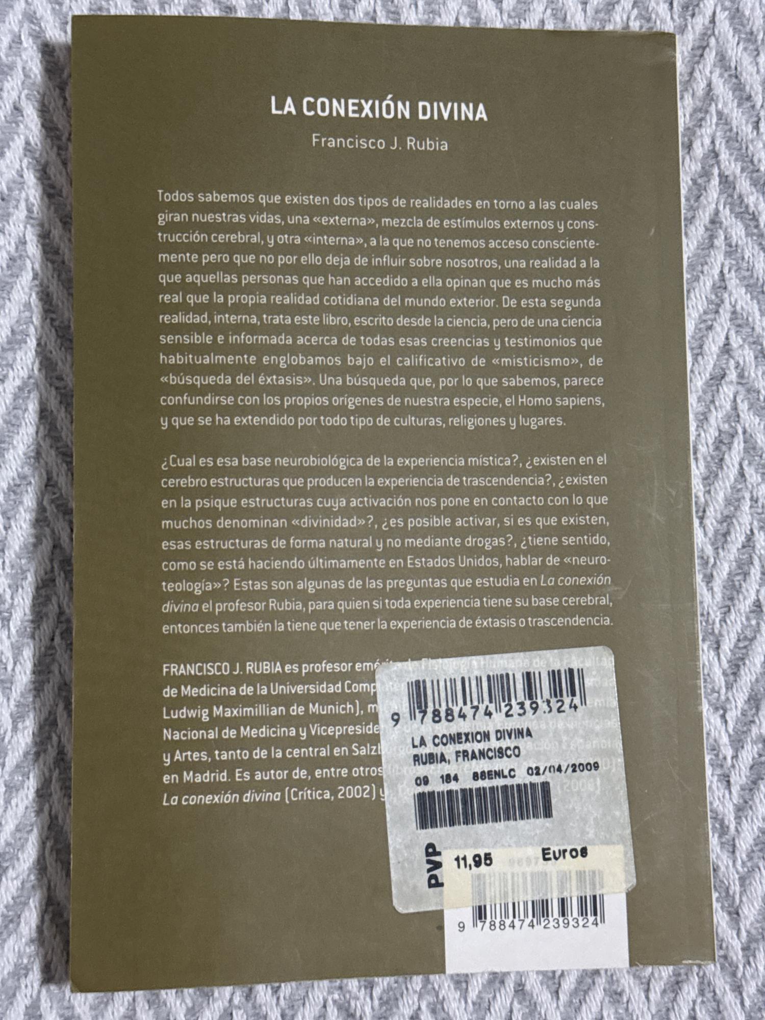Rubia explora las bases neurobiológicas de la experiencia mística, preguntándose si las vivencias de éxtasis, trascendencia o sentido de lo divino tienen correlatos cerebrales y estructuras neuronales que puedan explicar tales estados desde una perspectiva científica. El libro aborda el diálogo entre ciencia, espiritualidad y experiencias religiosas a través del análisis de cómo el cerebro genera realidades “internas” profundamente significativas para quienes las viven.