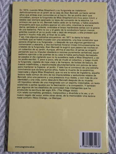 En 1974, Miss Shepherd y su furgoneta se establecen en el jardín de la casa de Alan Bennett, convertida así en una presencia cotidiana en su vida y en el vecindario.