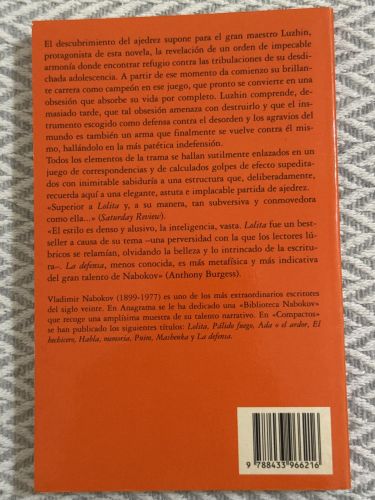 El descubrimiento del ajedrez supone para el gran maestro Luzhin, protagonista de esta novela, la revelación de un orden de impecable armonía donde encontrar refugio contra las tribulaciones de su desdichada adolescencia.º
