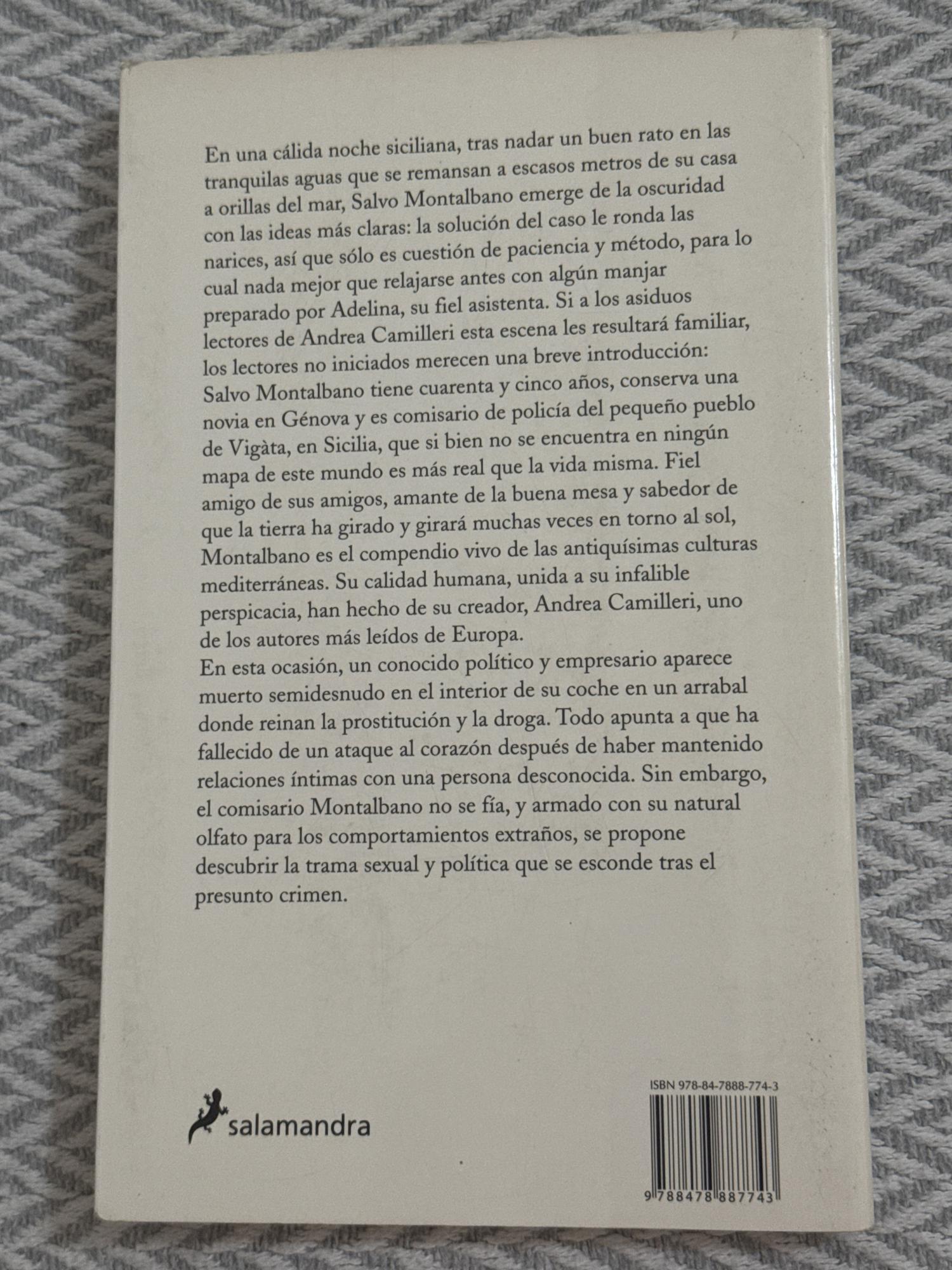 El comisario Salvo Montalbano es llamado para investigar la extraña muerte de un conocido político y empresario, hallado desnudo dentro de su coche en un barrio marginal marcado por la prostitución y la droga. Aunque parece un simple infarto post-encuentro íntimo, Montalbano no se deja engañar. Con paciencia, método e intuición, se propone descubrir la compleja red de celos, ambición y corrupción política que se oculta tras esa muerte sospechosa.