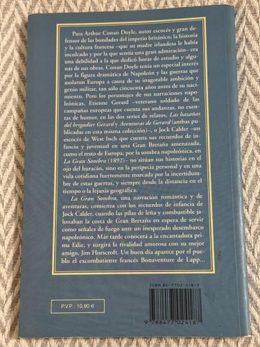 La gran sombra es una novela romántica y de aventuras ambientada durante la amenaza napoleónica. La historia se remonta a los recuerdos infantiles de Jock Calder, que vive en una Gran Bretaña en alerta constante: grandes pilas de leña se disponen en la costa como señales defensivas ante un posible desembarco francés.