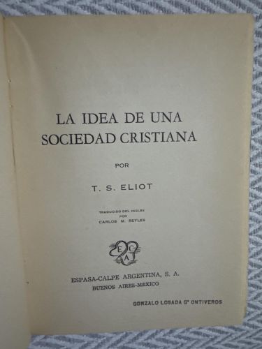 Reflexiona sobre la posibilidad de fundamentar la vida social y política en principios cristianos en el mundo moderno. Eliot analiza la relación entre cultura, religión y organización social, defendiendo la necesidad de una base espiritual compartida. La obra combina crítica cultural con propuesta ética para la sociedad contemporánea.
