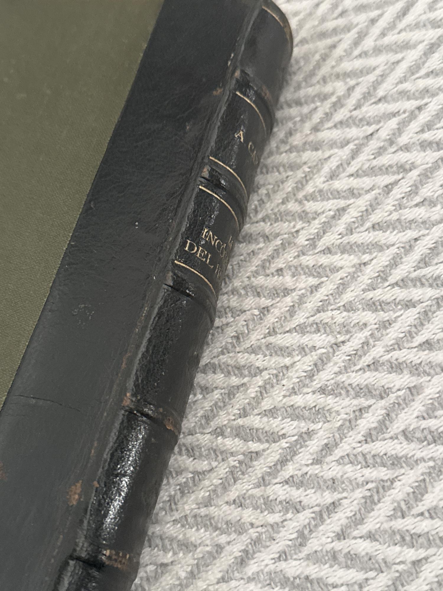 Filo manchado. Con señales de uso en tapa. Interior amarillento. Incluye partes marcadas en bolígrafo y lápiz + nombre del propietario