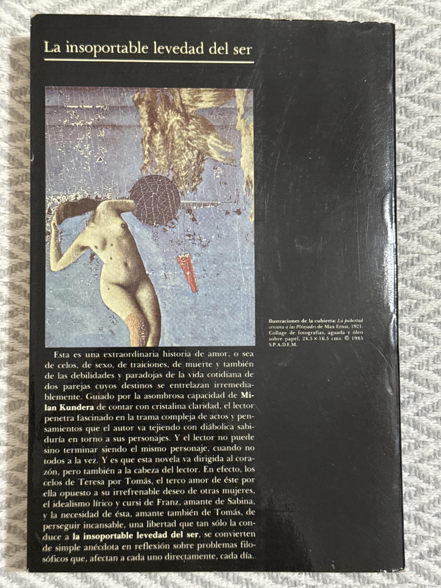 Ambientada en la Checoslovaquia del «Primavera de Praga» y sus secuelas, la historia sigue a tres personajes cuyas vidas se entrelazan en torno al amor, la traición, la identidad y la búsqueda de sentido en un mundo politizado. Explora cómo las decisiones personales tienen un peso inimaginable y cómo lo efímero adquiere un valor existencial.