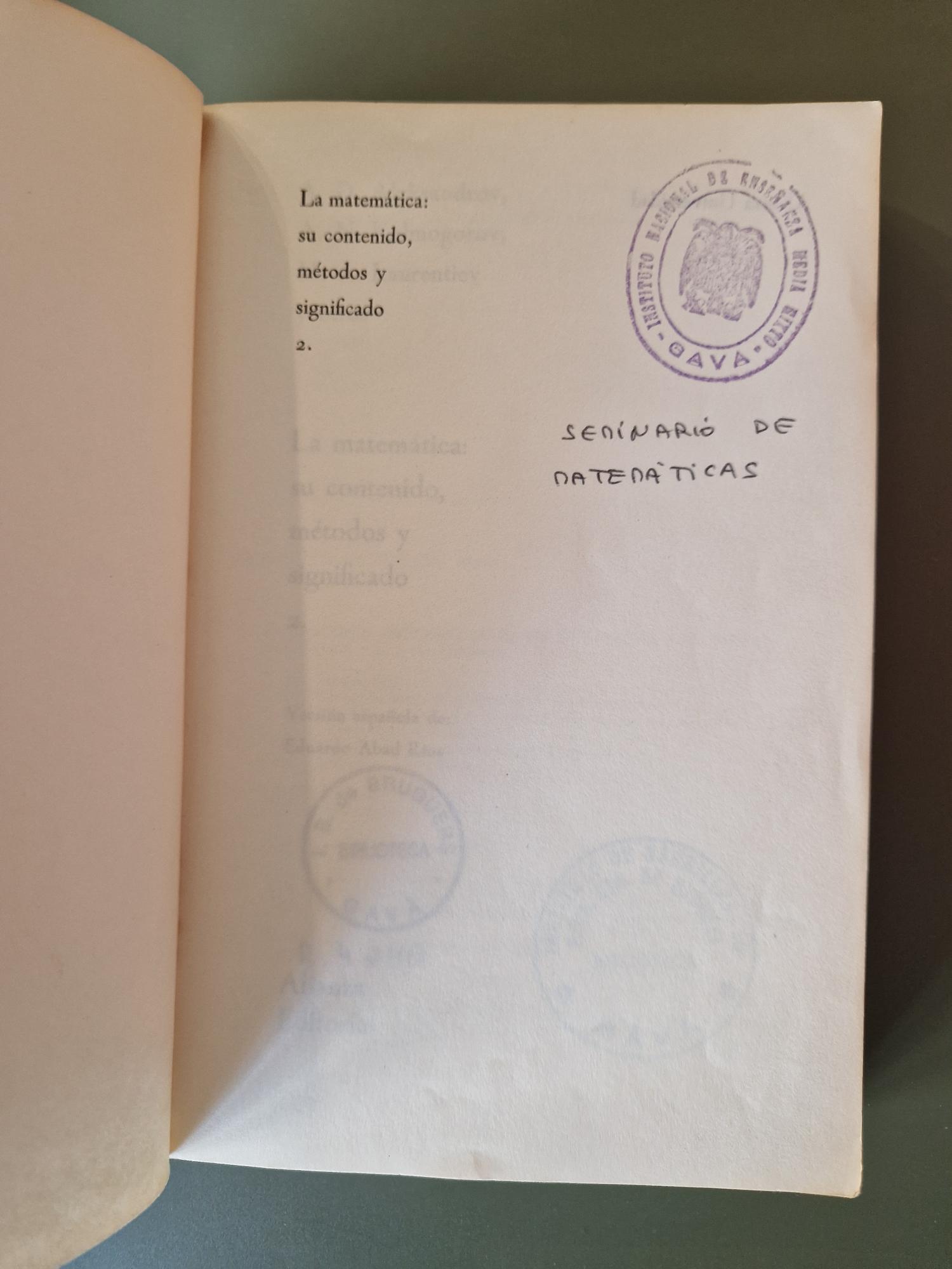 La matemática: su contenido, métodos y significado. Tomo 2