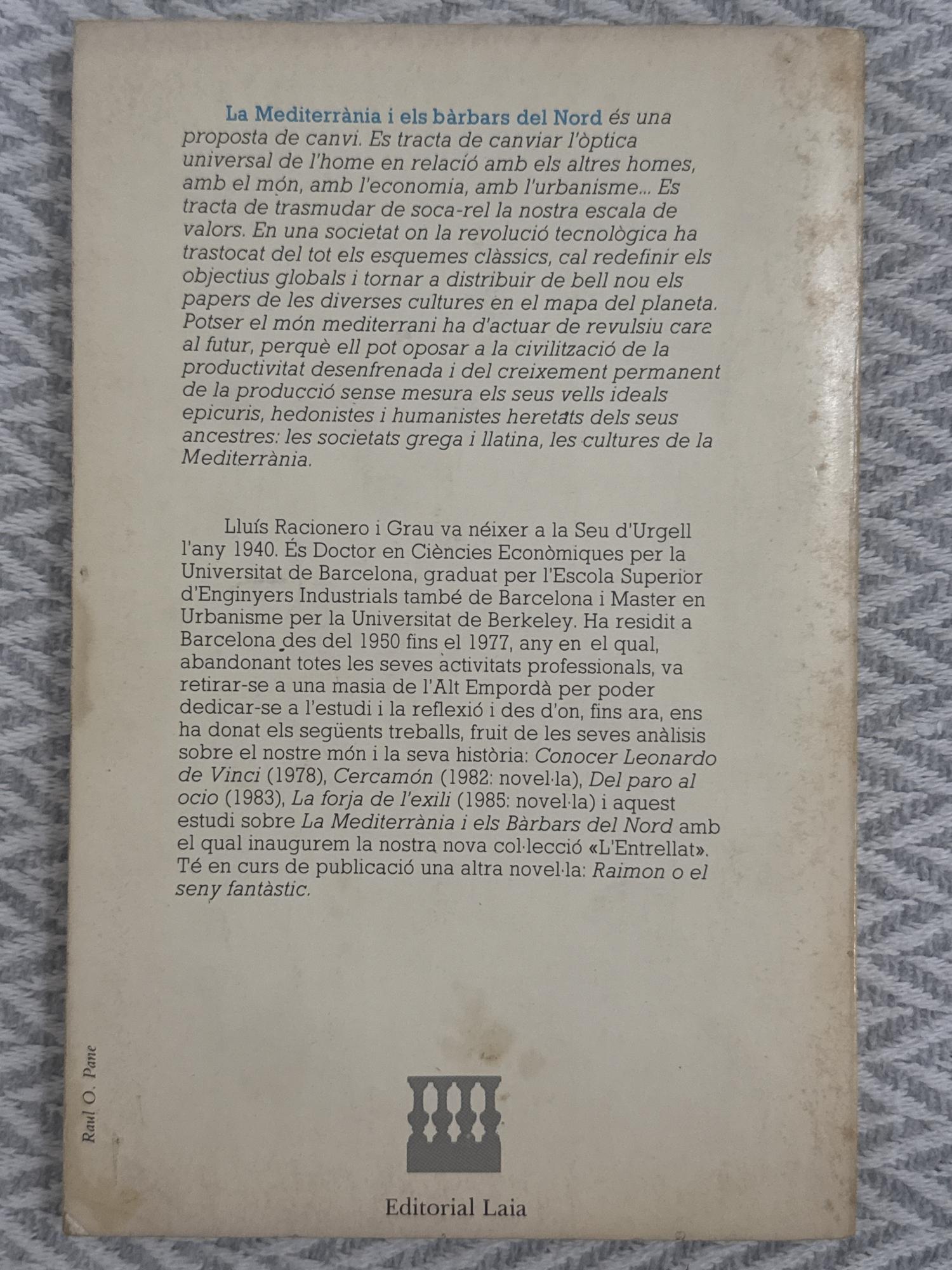 Lluís Racionero analitza la relació entre el món mediterrani i els pobles del Nord d’Europa, sovint anomenats “bàrbars”. Contrasta els seus valors, mites i formes de vida, però també mostra les influències mútues que han contribuït a configurar la civilització europea.