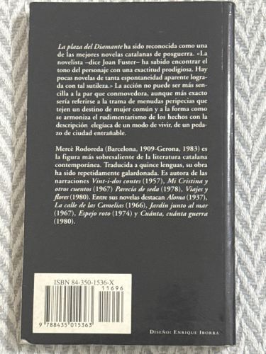 La plaza del Diamante narra la vida de Natalia, apodada “Colometa” (palomita), durante la posguerra en Barcelona. A través de su voz en primera persona, la novela recorre sus esperanzas, desilusiones, pérdidas y transformaciones.