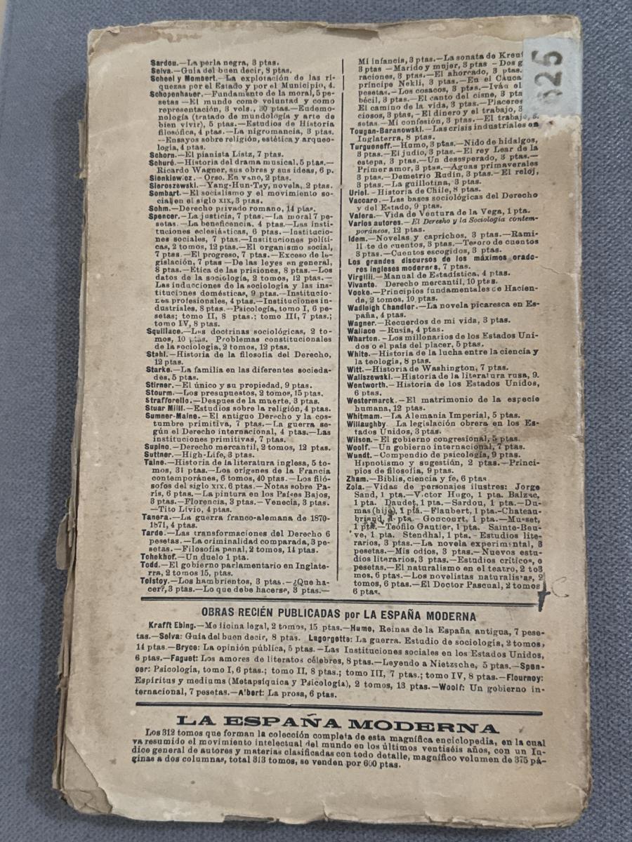 Publicado por La España Moderna, 1915, Castellano, 15x23cm, 314pp. Tapa blanda. Hojas tostadas por el tiempo. Con señales de uso.