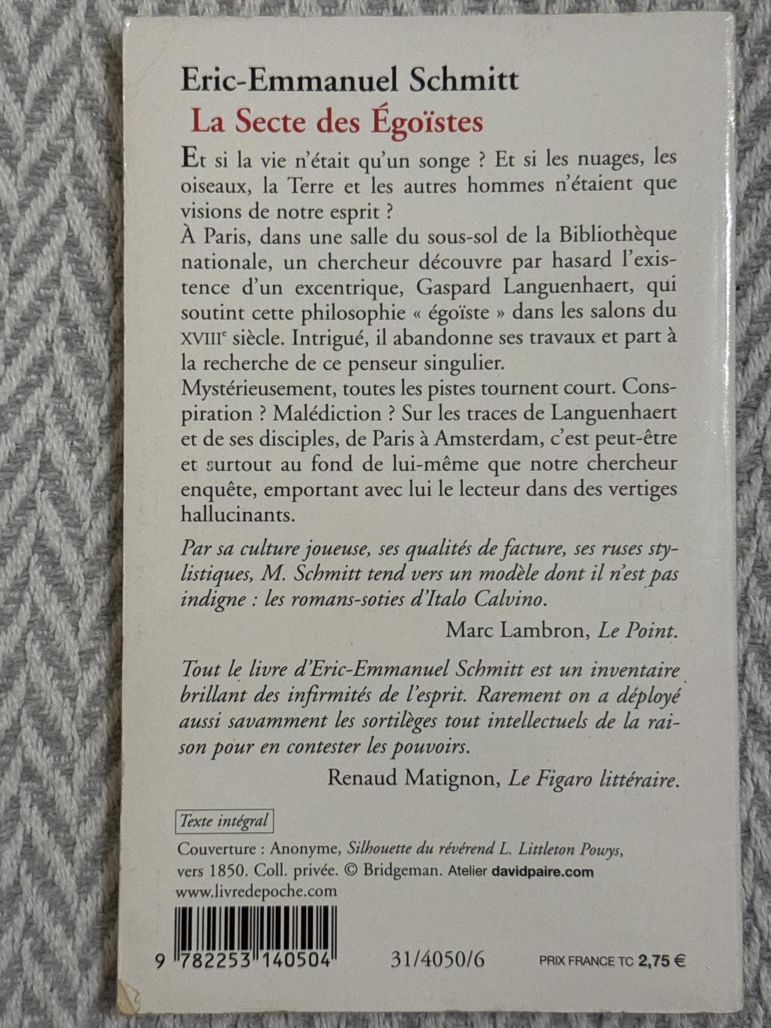 Un investigador descubre por casualidad la existencia de Gaspard Languenhaert, un excéntrico filósofo que defendía una filosofía llamada “egoísta” en los salones del siglo XVIII.