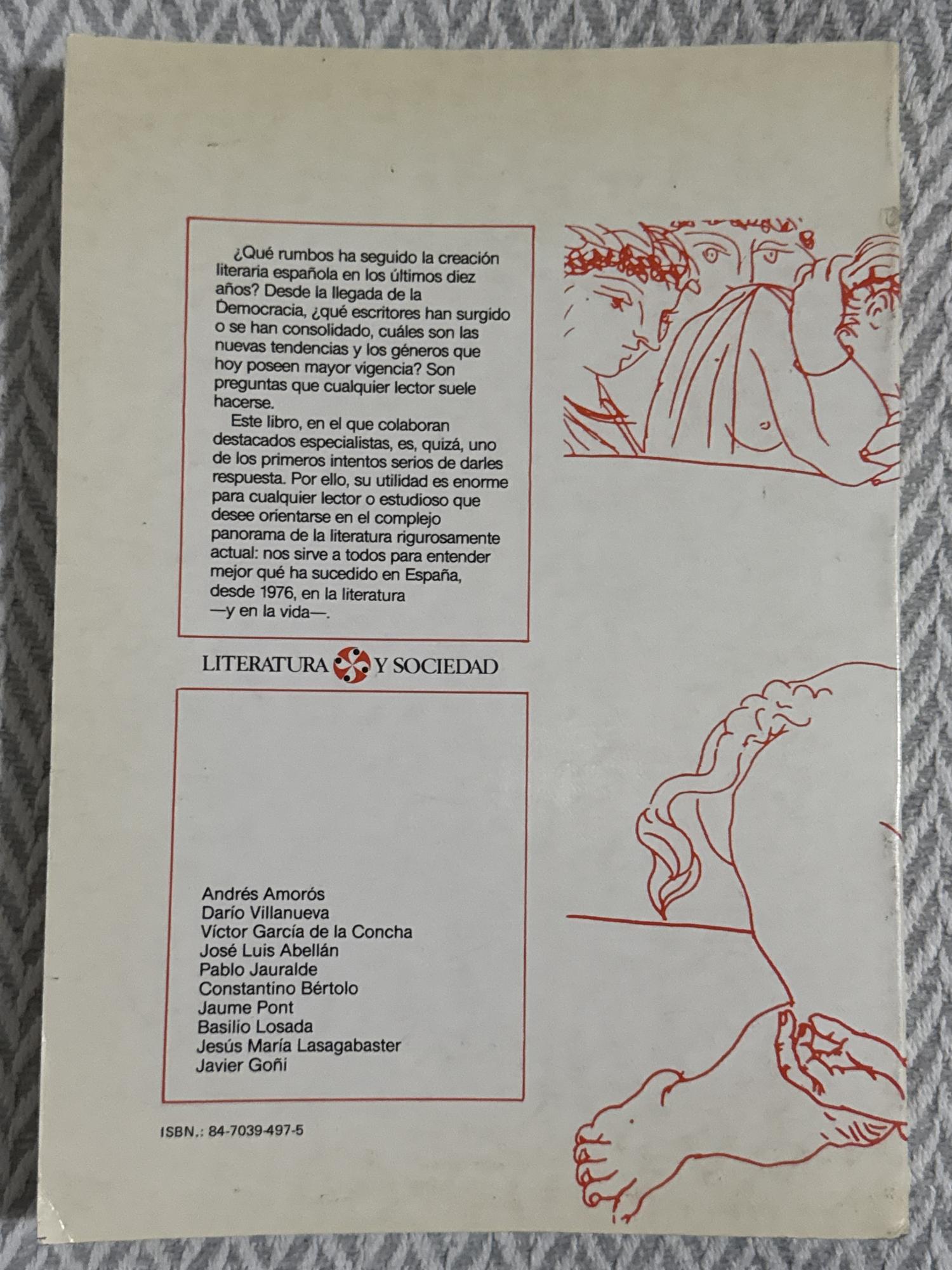 Este libro ofrece una panorámica crítica de la literatura española producida entre 1976 y 1986, abordando tendencias, autores y obras clave en una década marcada por la transición política y cultural. A través de estudios monográficos y ensayos, presenta un balance histórico y estético de ese periodo literario.