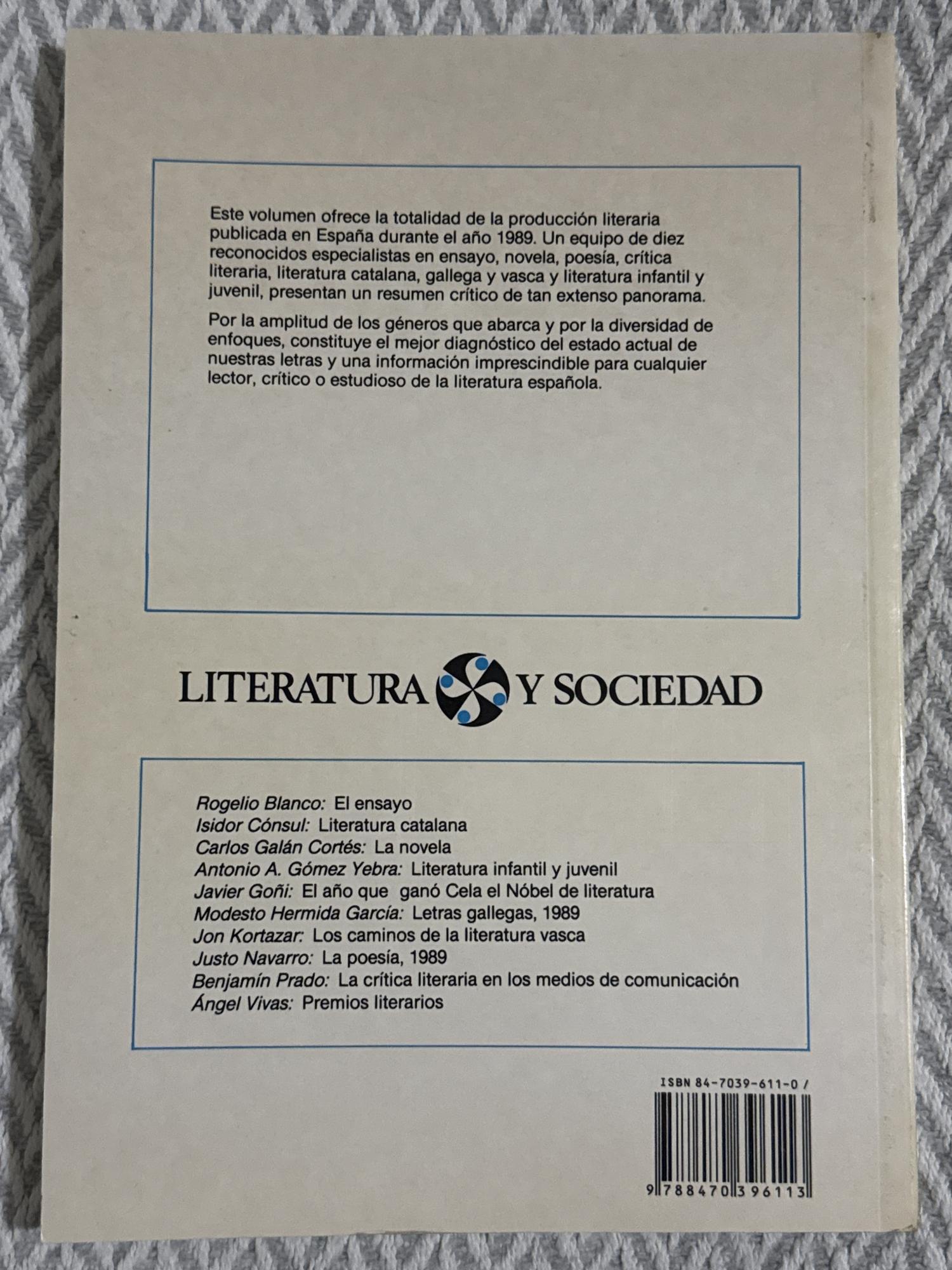 Este libro reúne estudios y ensayos críticos sobre la literatura española del año 1989, examinando autores, obras y tendencias relevantes de ese periodo. Ofrece un enfoque analítico desde la historia literaria y la crítica cultural, pensado para estudiantes y especialistas en literatura.