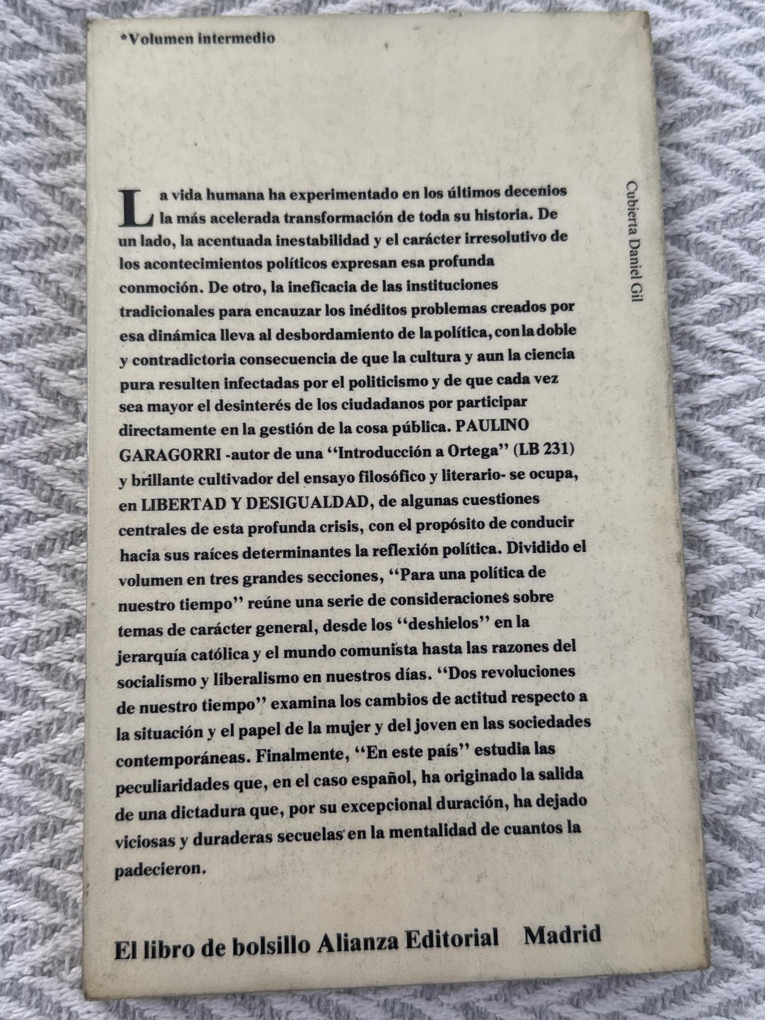 Libertad y desigualdad de Paulino Garagorri es un ensayo de filosofía social y política que reflexiona sobre la relación entre la libertad individual y las desigualdades sociales. La obra analiza críticamente los conceptos de igualdad, justicia y responsabilidad desde una perspectiva liberal-humanista, atendiendo a sus implicaciones éticas y culturales.
