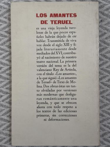 Los amantes de Teruel de Tirso de Molina es una obra teatral basada en la célebre leyenda medieval de los Amantes de Teruel. Escrita en forma de comedia dramática del Siglo de Oro, aborda el amor imposible, el honor y el destino trágico, combinando elementos líricos y morales propios del teatro barroco español.