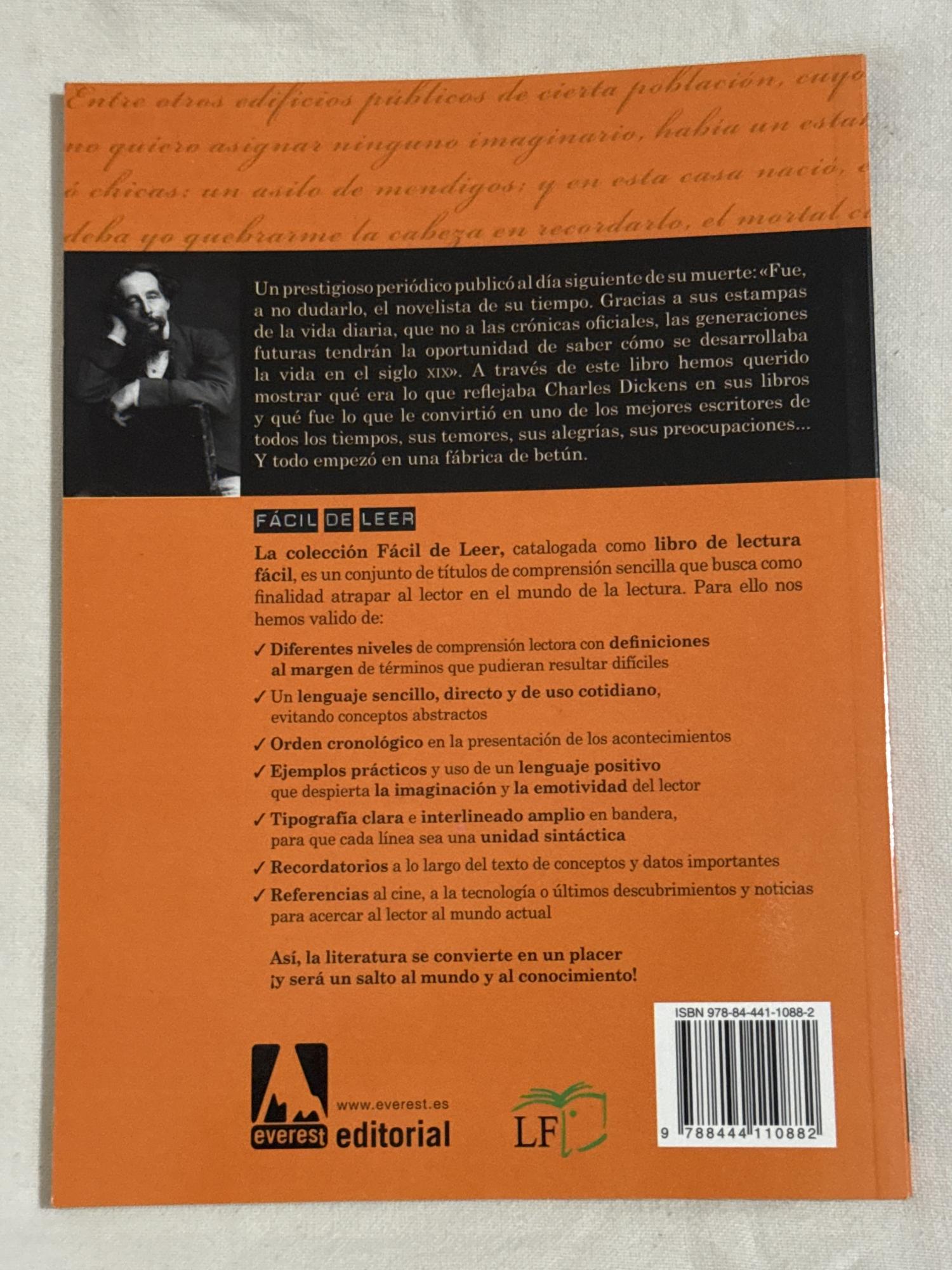 Los oscuros rincones de Londres. La vida de novela de Dickens (ISBN 9788444110882) de Carmen Gutiérrez Gutiérrez es una biografía accesible de Charles Dickens dirigida a jóvenes lectores de 10 a 12 años. A través de un estilo narrativo sencillo, la autora explora la vida del escritor británico, desde su infancia en una fábrica de betún hasta su ascenso como novelista. El libro destaca cómo sus experiencias personales y su visión crítica de la sociedad victoriana se reflejan en sus obras más conocidas, como Oliver Twist, David Copperfield y Un cuento de Navidad. La obra busca acercar a los jóvenes al mundo de Dickens, mostrando cómo sus relatos siguen siendo relevantes y conmovedores.