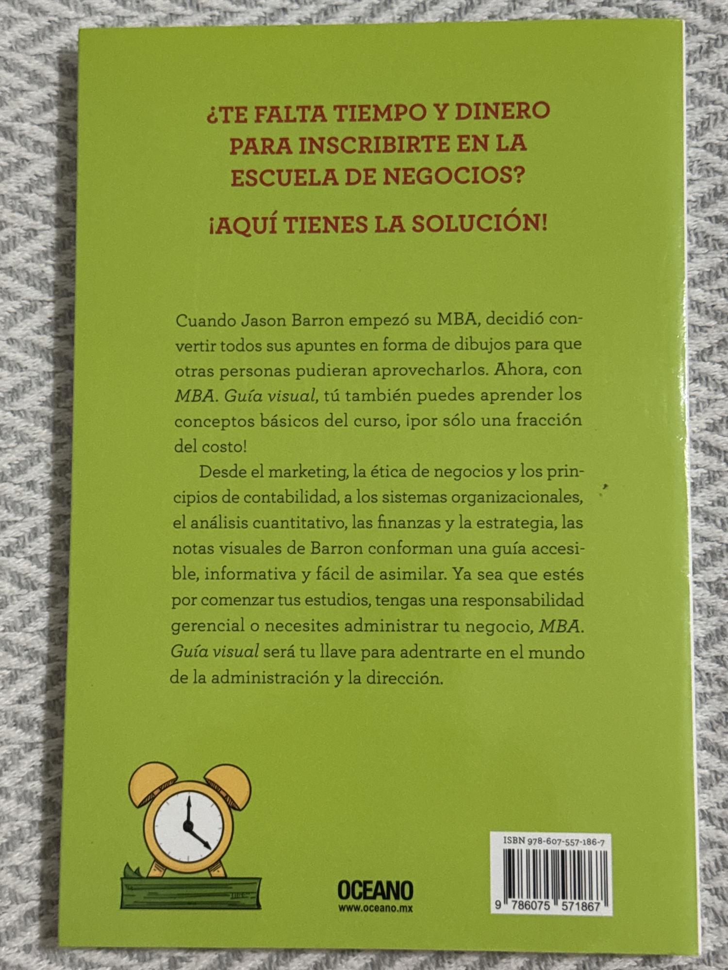 El autor, Jason Barron, cuando cursaba su MBA convirtió sus apuntes en dibujos y esquemas visuales para facilitar la comprensión. En MBA. Guía visual, recopila esos apuntes gráficos y los organiza como una guía accesible que cubre los fundamentos de un programa de negocios: marketing, ética empresarial, contabilidad, sistemas organizacionales, análisis cuantitativo, finanzas, estrategia, entre otros.