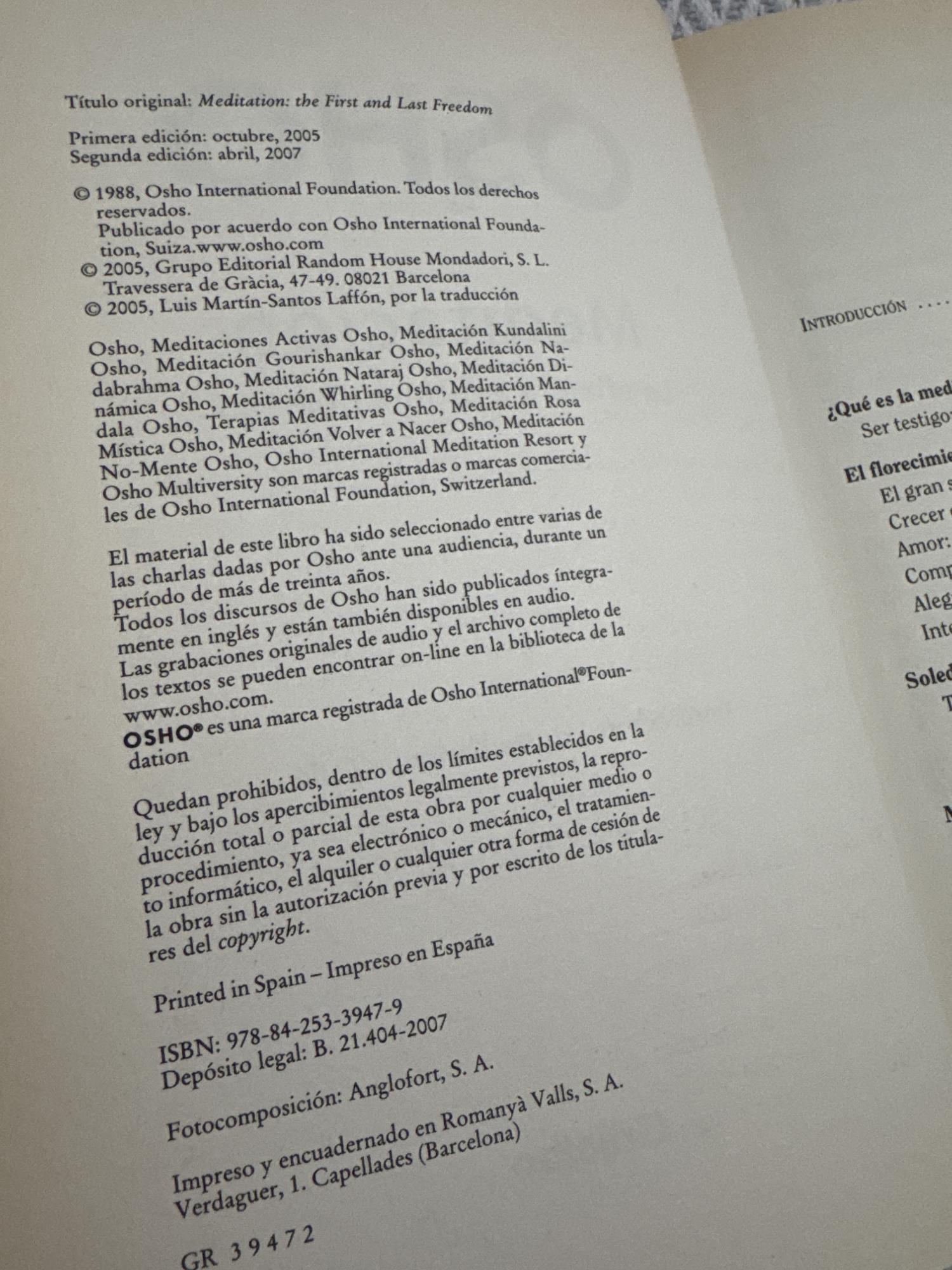El libro presenta la meditación como una vía de libertad interior y autoconocimiento, más allá de técnicas rígidas o disciplinas formales. Osho propone una comprensión vital de la atención y la conciencia, orientada a integrar cuerpo, mente y experiencia cotidiana.