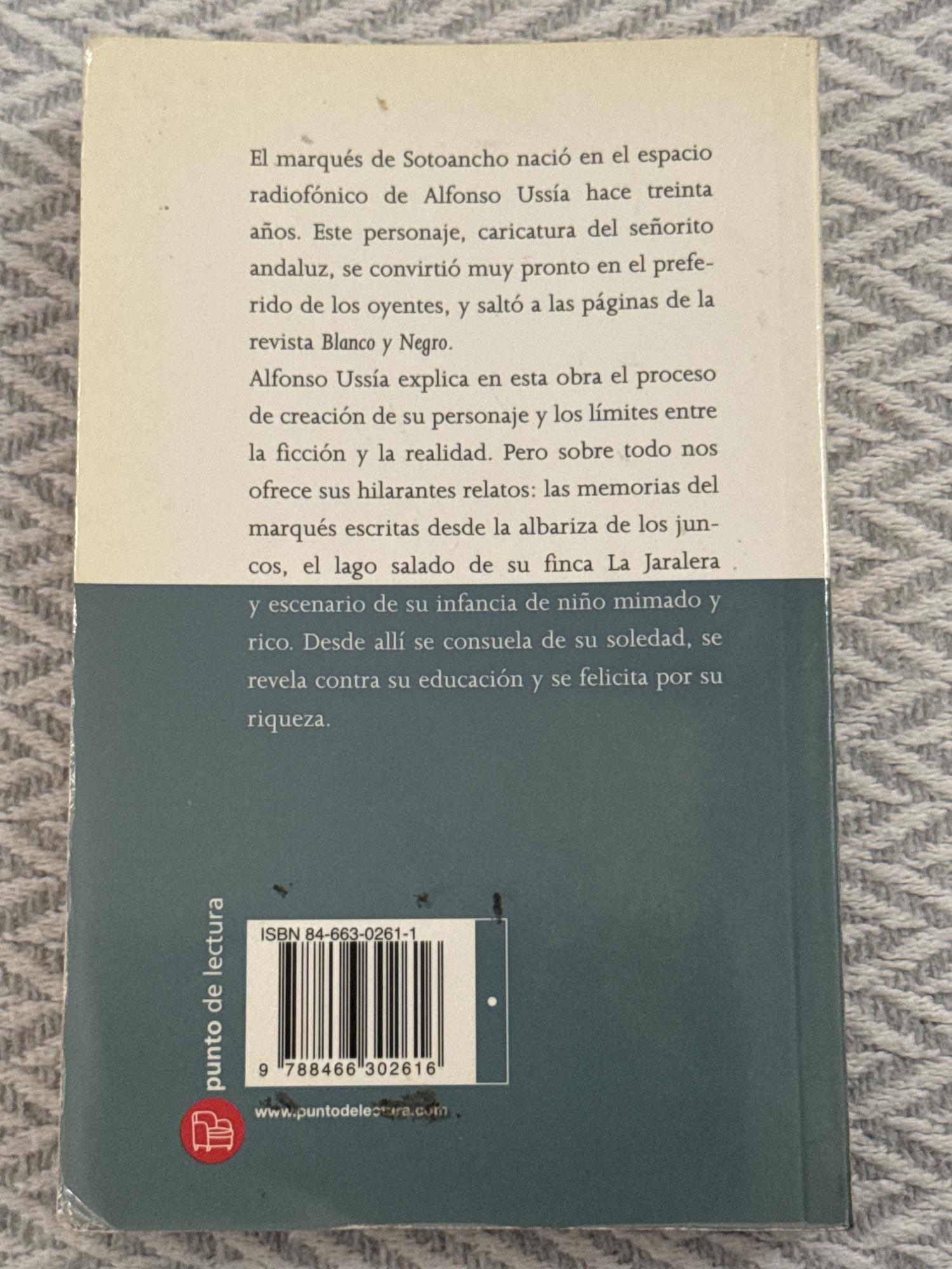 Memorias del marqués de Sotoancho relata, con tono irónico y satírico, las vivencias de un aristócrata ficticio; una mezcla de anécdotas, crítica social y humor. A través de este personaje, el autor ofrece una visión mordaz de la alta sociedad, sus costumbres y sus contradicciones. Es una obra ligera, divertida y reflexiva, ideal para quienes disfrutan de novelas cómicas con fondo social.