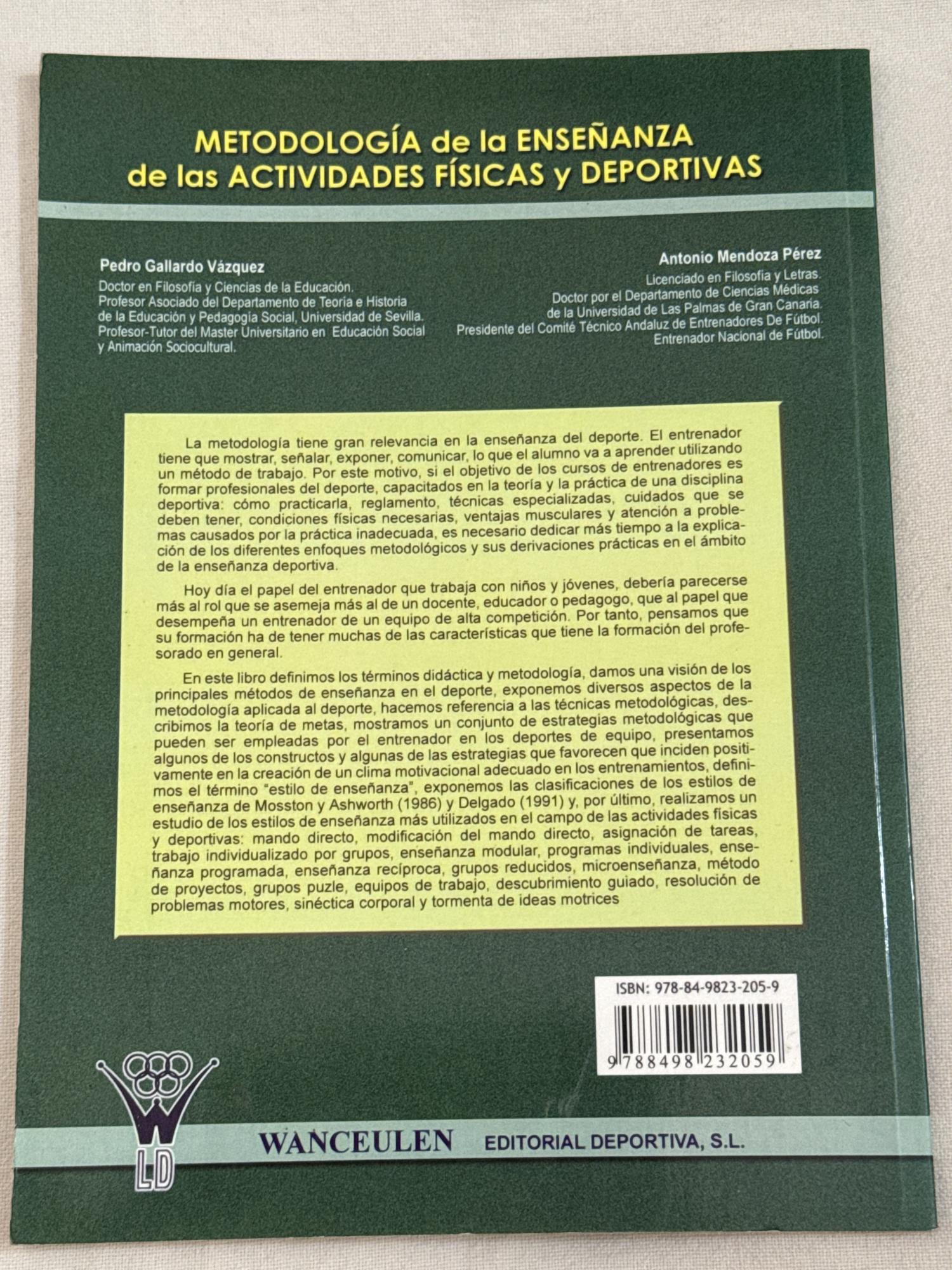 El libro Metodología de la enseñanza de las actividades físicas y deportivas de Pedro Gallardo Vázquez y Antonio Mendoza Pérez, publicado por Wanceulen Editorial en 2009, se centra en la importancia de la metodología en la enseñanza del deporte. Los autores destacan que el entrenador debe ser capaz de mostrar, señalar, exponer y comunicar lo que el alumno va a aprender, utilizando un método de trabajo adecuado.