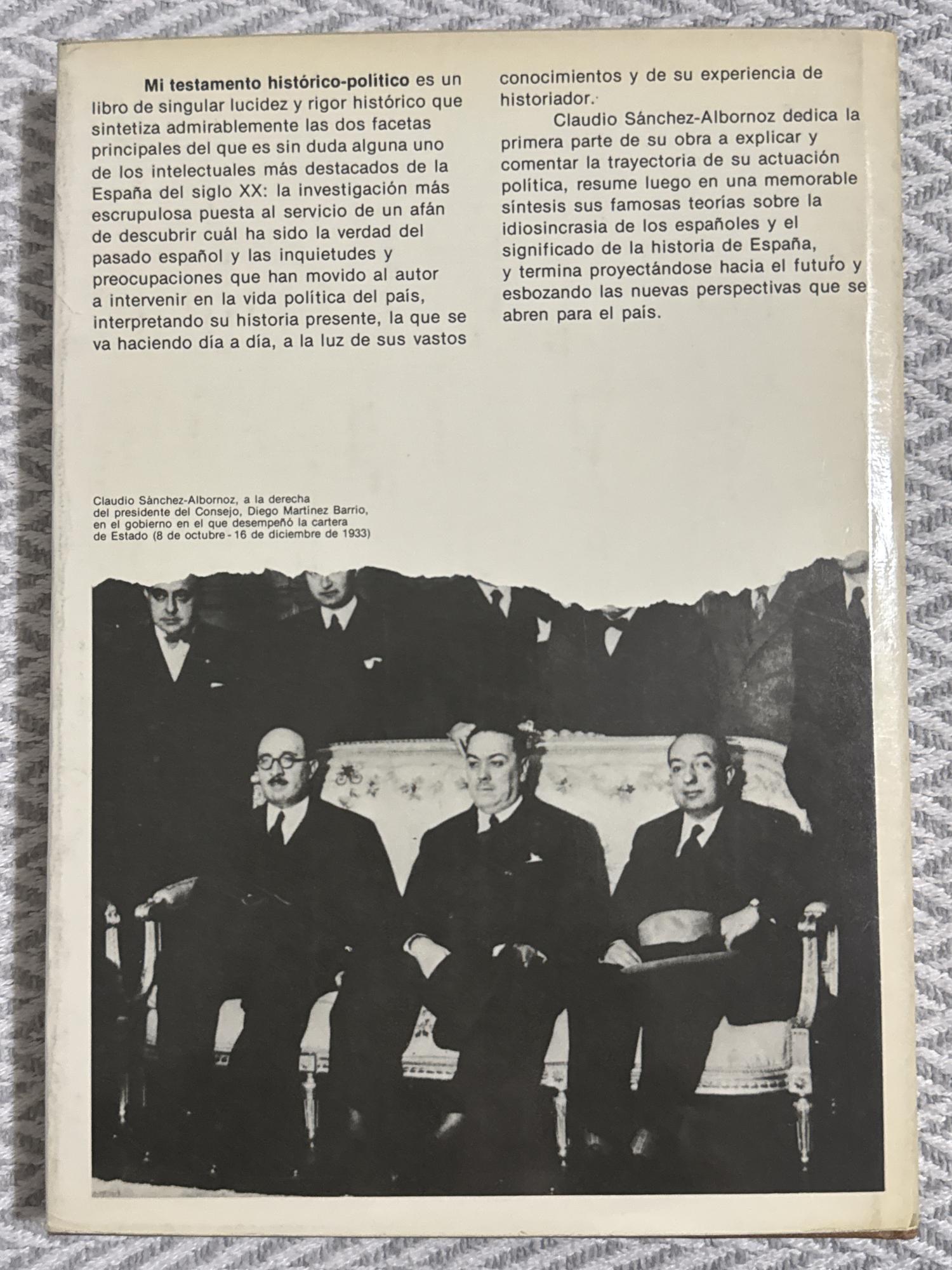 Mi testamento histórico-político de Claudio Sánchez-Albornoz es una obra de reflexión histórica y política en la que el autor expone, desde una perspectiva personal, su interpretación de la historia de España y de los acontecimientos políticos del siglo XX. El libro combina memoria intelectual, análisis histórico y posicionamiento ideológico, funcionando como balance final de su pensamiento.