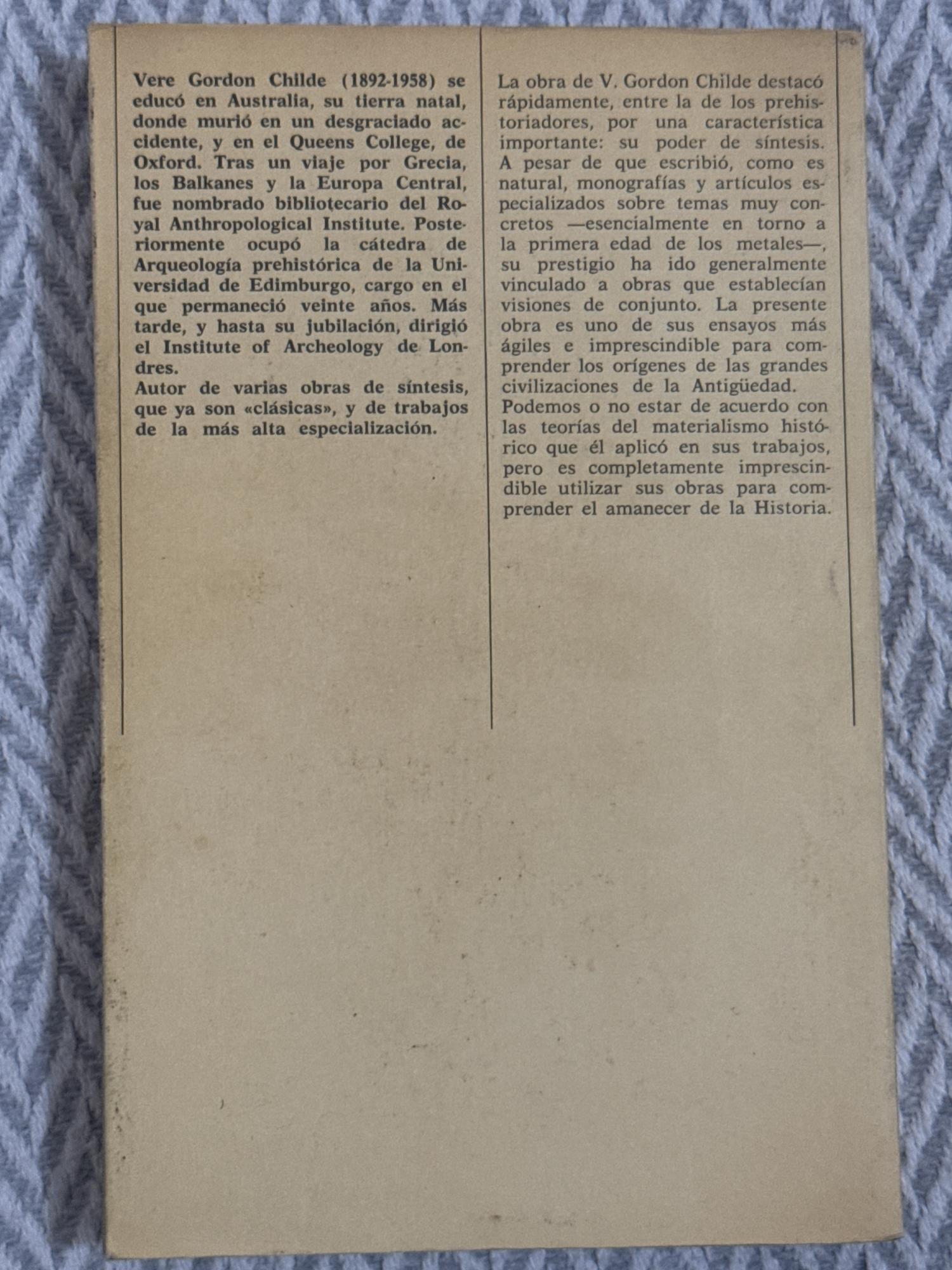 Nacimiento de las civilizaciones orientales es un clásico de la historiografía que ofrece una visión panorámica de los orígenes de las principales civilizaciones del Cercano y Medio Oriente, explorando sus desarrollos culturales, sociales y tecnológicos. Childe examina hallazgos arqueológicos y evidencia material para reconstruir cómo surgieron las primeras sociedades complejas en regiones como Mesopotamia y Egipto. El texto combina análisis histórico con síntesis interpretativa para comprender el “amanecer de la civilización humana”.