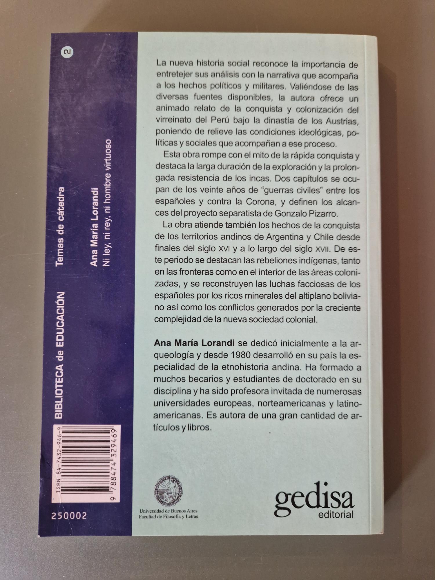 En este estudio, Ana María Lorandi analiza el papel de la guerra en la configuración social y política del virreinato del Perú durante los siglos XVI y XVII. A través de una investigación histórica rigurosa, examina las dinámicas de poder, los conflictos y las tensiones que marcaron la sociedad colonial. El libro ofrece una mirada compleja sobre la relación entre violencia, organización social y dominio imperial. Una obra clave para comprender la historia andina en el periodo colonial.