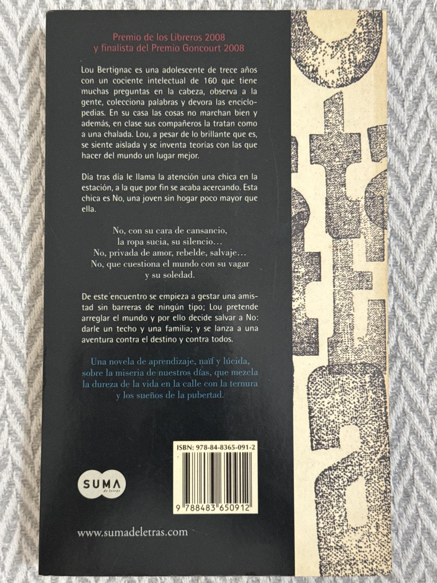 No y yo de Delphine de Vigan relata el encuentro entre Lou, una chica superdotada y solitaria, y No, una joven sin hogar. A través de esta amistad poco convencional, la novela explora temas como la soledad, la empatía y la marginación social.