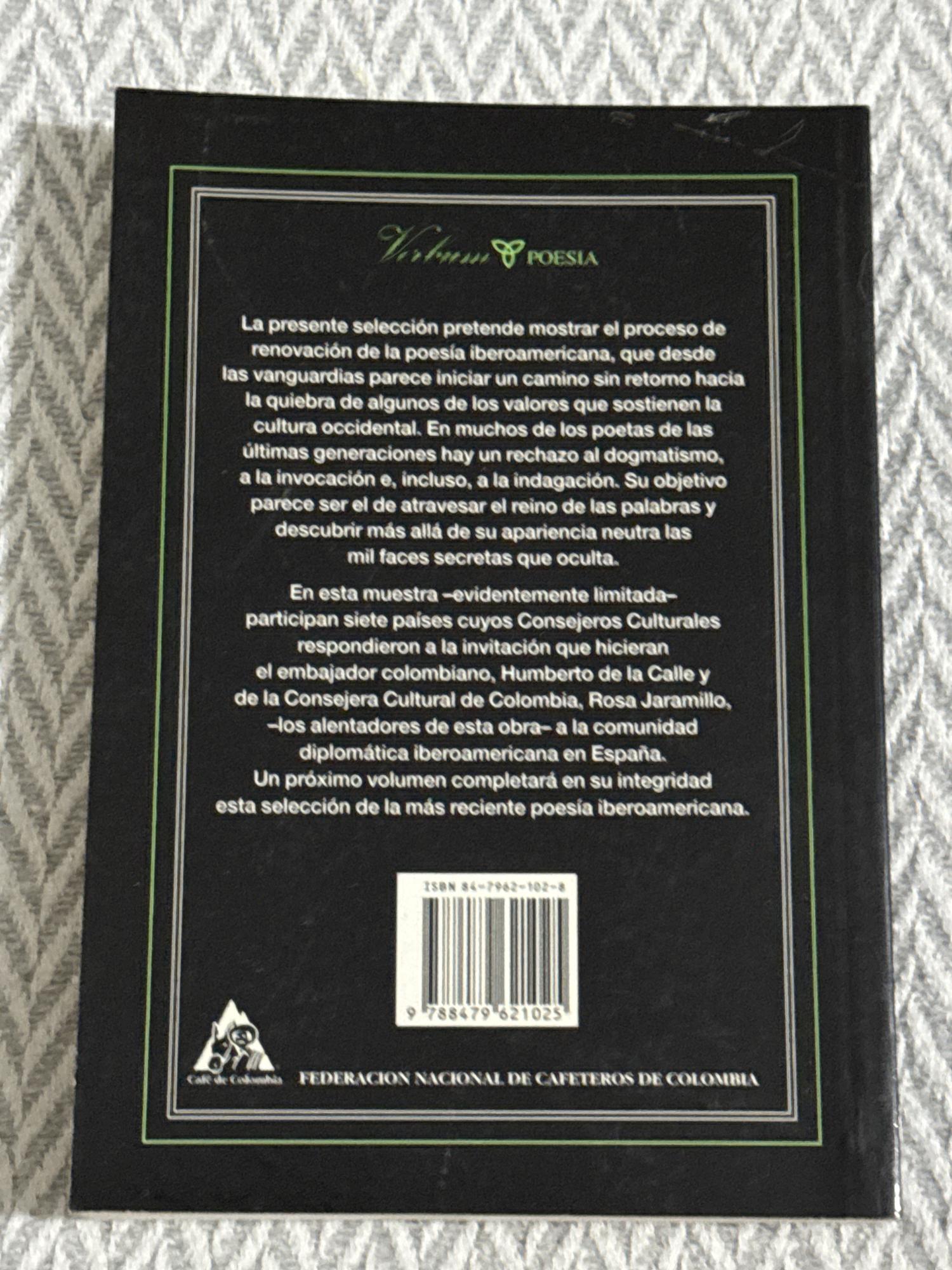 Compilado por Consuelo Triviño Anzola y editado por Verbum en 1997, este volumen de 548 páginas presenta una selección amplia de poesía de Argentina, Brasil, Chile, Colombia, España, México y Venezuela, brindando una panorámica diversa y enriquecedora del panorama poético iberoamericano contemporáneo.