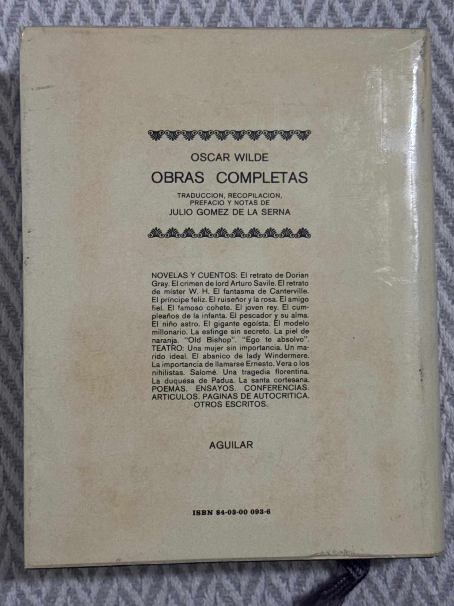 Esta edición reúne el conjunto fundamental de la obra literaria de Oscar Wilde, incluyendo teatro, narrativa, poesía y ensayos. Sus textos destacan por el ingenio, la ironía y la crítica moral y social, así como por una defensa estética de la belleza y la libertad individual.