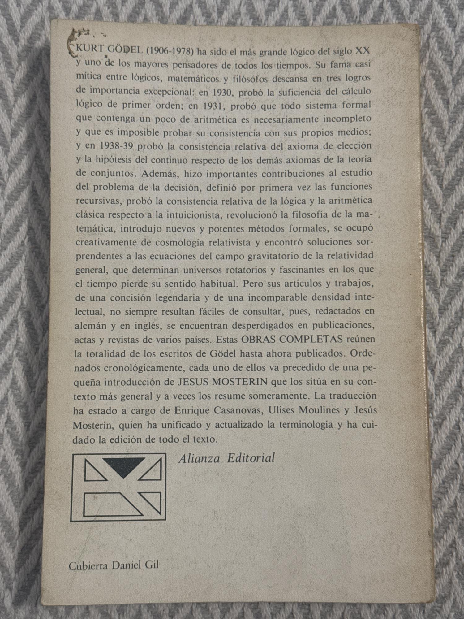 El volumen reúne los trabajos fundamentales de Kurt Gödel, incluyendo sus célebres teoremas de incompletitud. Presenta contribuciones clave a la lógica matemática, la teoría de conjuntos y la filosofía de las matemáticas. Es una obra esencial para comprender los límites y fundamentos de los sistemas formales.