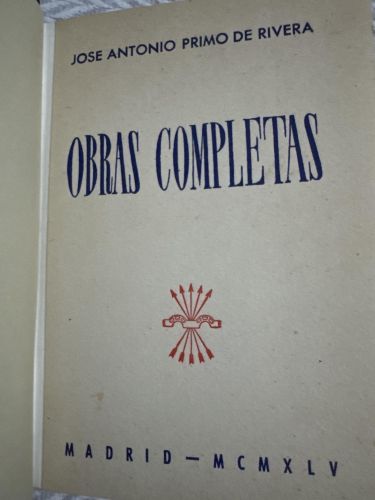 La edición de 1945 de las Obras completas de José Antonio Primo de Rivera es un ensayo político-ideológico que reúne discursos, artículos, manifiestos, cartas y otros escritos producidos por el fundador de Falange Española. Fue publicada de manera póstuma para preservar y difundir su pensamiento, convirtiéndose en una obra clave para entender el falangismo español.