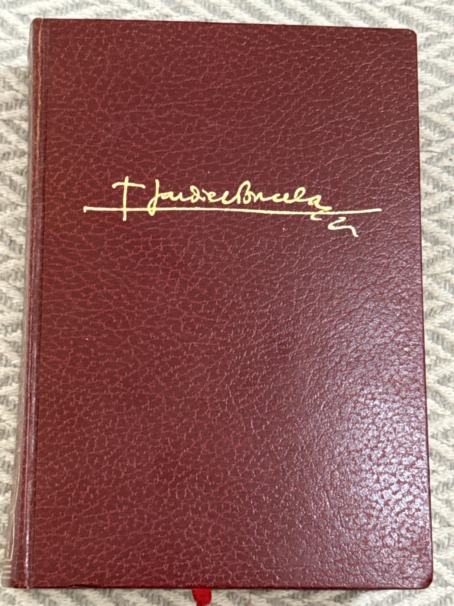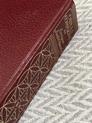 Tapa dura símil piel con letras grabadas en dorado. Filo superior dorado