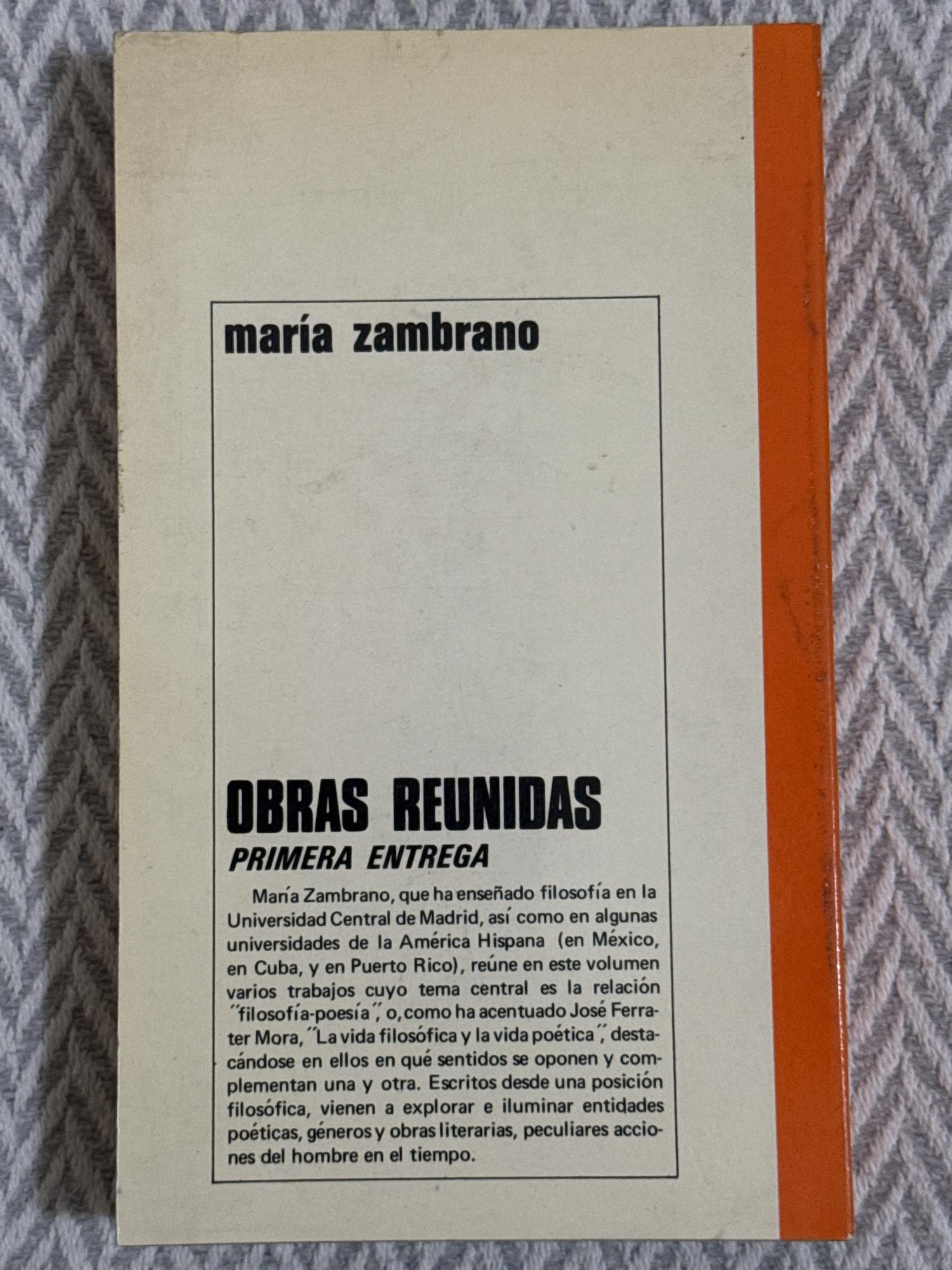 Obras reunidas recopila los textos fundamentales de María Zambrano, abarcando ensayos filosóficos, escritos poéticos y reflexiones políticas y espirituales que desarrollan su pensamiento de la razón poética. El conjunto permite seguir la evolución de una de las voces más singulares de la filosofía española del siglo XX, marcada por el exilio, la interioridad y la búsqueda de un saber integrador.